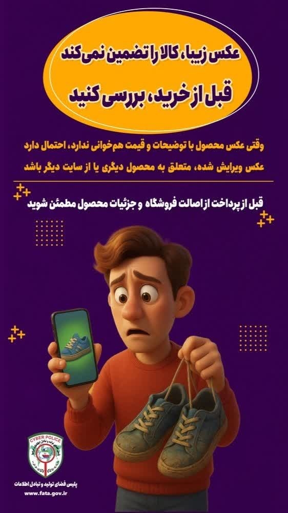 هر وقت دیدی وقتی عکس محصول با توضیحات و قیمت همخوانی ندارد مشکوک باش و خرید را متوقف کن.