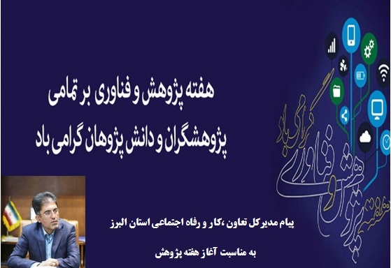 پیام مدیرکل تعاون،کارورفاه اجتماعی استان البرز به مناسبت هفته پژوهش و فناوری