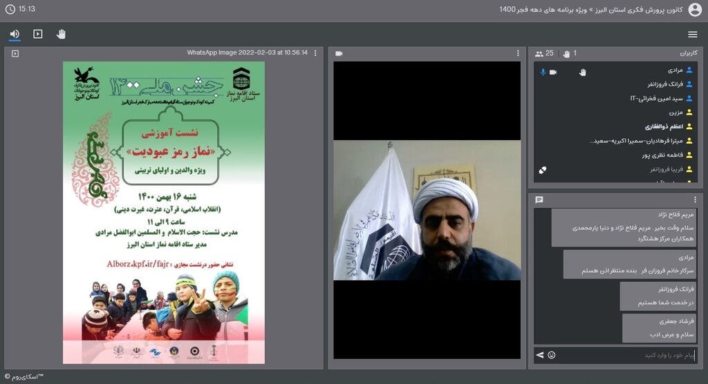 به گزارش روابط عمومی اداره کل کانون البرز این ویژه برنامه از برنامههای پیشنهادی شورای اقامه نماز کانون پرورش فکری کودکان و نوجوانان استان البرز و از نشستهای ویژه کمیته کودک و نوجوان ستاد گرامی داشت ایام الله دهه فجر استان البرز بود که به همت واحد آموزش و پژوهش کانون استان برگزار شد.حجت الاسلام ابوالفضل مرادی، مدیر ستاد اقامه نماز استان و مدرس این نشست آموزشی مجازی در ابتدای این دوره که روز شنبه ۱۶ بهمن ۱۴۰۰ با حضور مهری فلاح، معاون فرهنگی، اجرایی، کارشناسان، مسوولا و مربیان کانون البرز برگزار شد، ضمن تبریک ایام الله دهه فجر سالروز شهادت امام هادی (ع) را تسلیت گفته و به ذکر احادیثی از این امام پرداخت.این مقام مسوول در ادامه از برگزاری چنین نشستهایی ابراز خرسندی کرده و در خصوص نماز و نشانههای عبادی آن صحبت کرد.هر چه انسان به عبودیت که هدف خلقت است نزدیک تر شود کارکردهای او در همه زمینهها بهتر خواهد شد