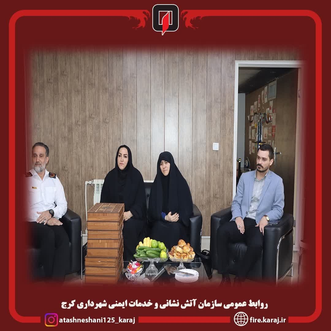 به مناسبت هفته آتشنشانی و ایمنی، مسئول امور بانوان و خانواده نماینده مردم کرج در مجلس شورای اسلامی با حضور در ایستگاه بانوان آتشنشانی شهرداری کرج، از نزدیک با روند فعالیتها، توانمندیها و مشکلات آتشنشانان بانوان دیدار و گفتگو کرد.