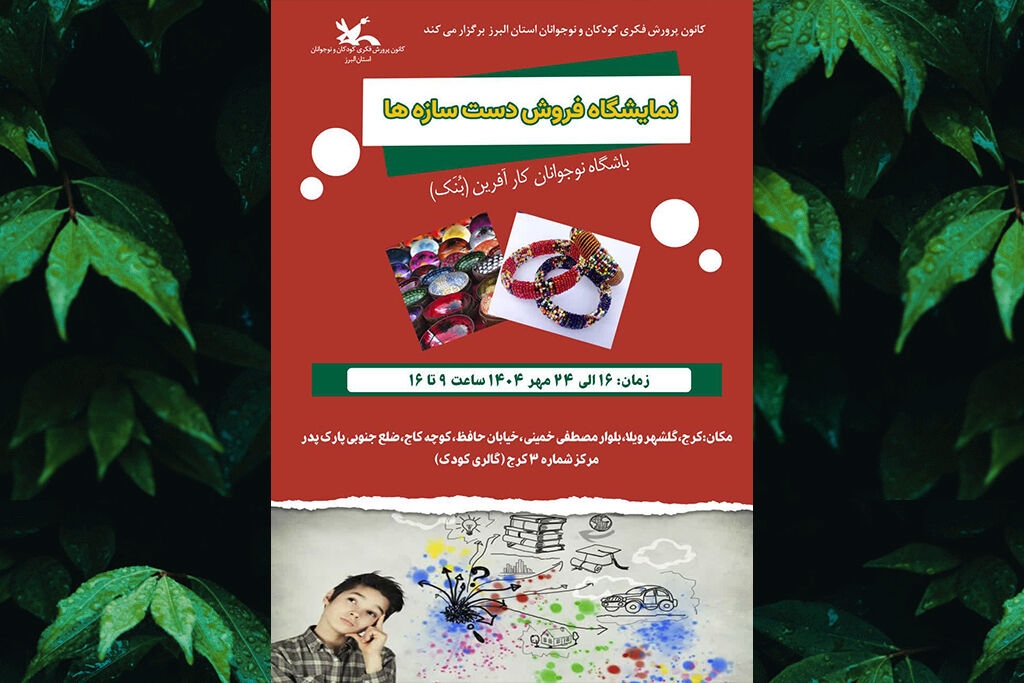 باشگاه نوجوانان کارآفرین با نام اختصاری( بنک) قریب دو سال است که فعالیت خود را با هدف آموزش تولید و کارآفرینی به کودکان و نوجوانان آغاز کرده و با بهرهگیری از اساتید حوزههای مختلف، آموزش های مناسب در این زمینه را به کودکان و نوجوانان ارائه داده است.این باشگاه هر ساله در چند نوبت نمایشگاهها و فروشگاه هایی یی از آثار اعضا را به جهت افزایش انگیزه و تشویق آنان برپا میکند .بر این اساس یکی از این نمایشگاههابا عنوان نمایشگاه و فروشگاه «دستسازهها» از روز چهارشنبه ۱۶ مهر ماه ۱۴۰۴ به مدت ۹ روز در مرکز شماره ۳ کانون کرج واقع در گلشهرویلا،.بلوار مصطفی خمینی.خیابان حافظ. کوچه کاج. ضلع جنوبی بوستان پدر، برپا خواهد شدو علاقهمندان میتوانند در روزهای کاری از ساعت ۹ تا ۱۶ جهت بازدید از این نمایشگاه به این مرکز مراجعه کنند.