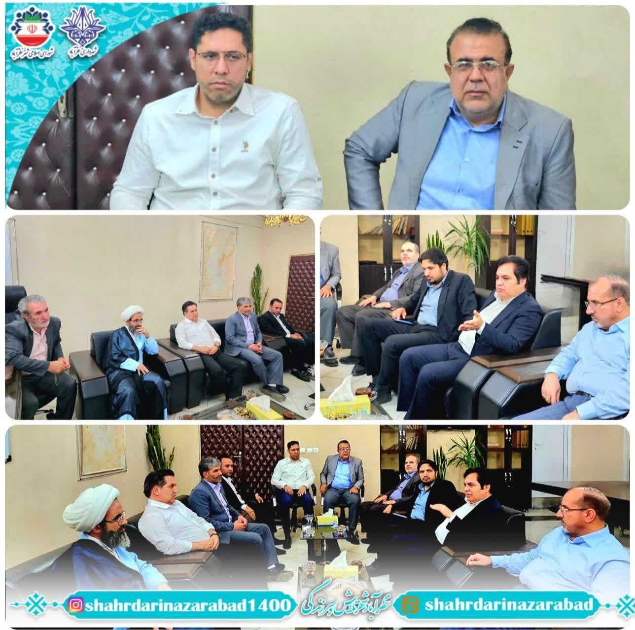 نشستی با حضور حجتالاسلام والمسلمین محمدی امام جمعه محترم نظرآباد، دکتر حدادی نماینده مردم شهرستانهای ساوجبلاغ، نظرآباد و طالقان در مجلس شورای اسلامی، دکتر شمیرانی فرماندار محترم شهرستان نظرآباد، در دفتر دکتر نصیری شهردار نظرآباد و با حضور اعضای محترم شورای اسلامی شهر برگزار شد.