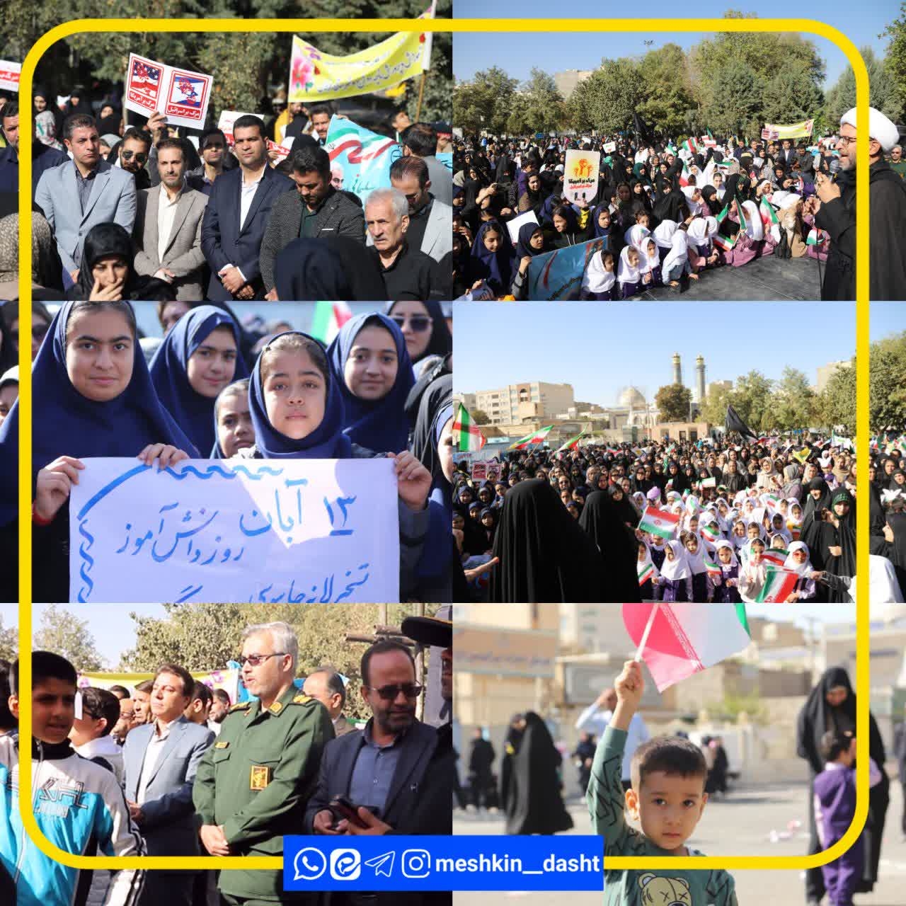 بسماللهالرحمنالرحیم ۱۳ آبان، روز استکبارستیزی و نماد ایستادگی ملت بزرگ ایران در برابر زورگوییهای جهانی، بار دیگر با حضور پرشور و آگاهانه مردم ولایتمدار مشکیندشت، جلوهای از اتحاد، بصیرت و عشق به میهن را به نمایش گذاشت.