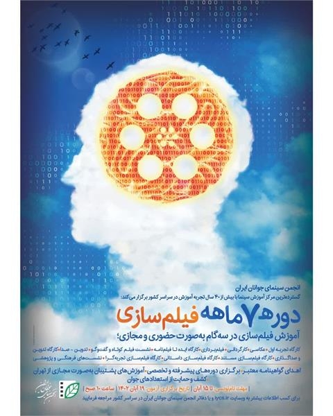 انجمن سینمای جوانان ایران، گستردهترین مجموعه آموزشی سینما در سطح کشور، دوره تخصصی جامع فیلم سازی هفت ماهه را برگزار می کند.این دوره 400 ساعته آموزشی در سه گام دروس دوره هفت ماه فیلمسازی، شامل: کارگاه تجربه اول - عکاسی - کارگردانی - فیلمبرداری - کارگاه ایده تا فیلمنامه - نشست فیلم کوتاه و گفتگو - تدوین - صدا - کارگاه تدوین و صداگذاری - کارگاه فیلمسازی مستند - کارگاه فیلمسازی داستانی - کارگاه فیلمسازی تجربه گرا - نشست های فرهنگی و پژوهشی را با بهرمندی از بهترین و مجرب ترین مدرسین شهر و کشور در بر دارد.در پایان این دوره گواهی نامه معتبر بینالمللی زیر نظر وزارت فرهنگ و ارشاد اسلامی اهدا خواهد شد.آزمون ورودی: جمعه ۱۹ آبان ماه ساعت ۱۰ صبح جهت کسب اطلاعات بیشتر و شرایط ثبت نام با تلفن ۰۲۶۳۲۵۲۱۶۸۱ تماس یا با تلفن همراه ( ۰۹۹۹۱۳۴۴۷۰۰ ایتا؛ تلگرام ؛ ) تماس حاصل فرمایید.
