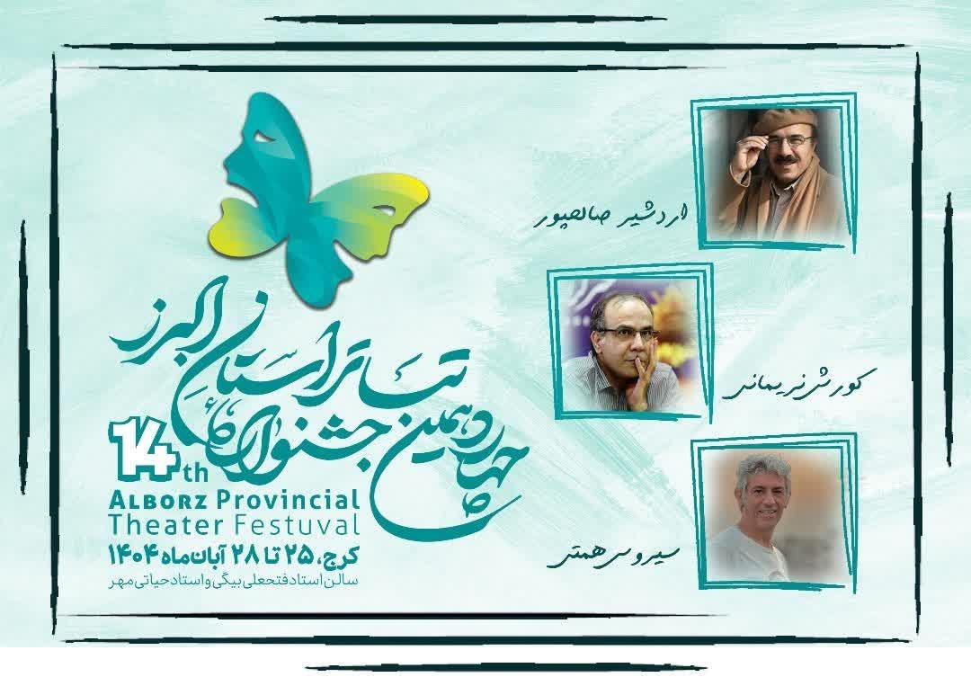 با آغاز چهاردهمین جشنواره تئاتر استان البرز از روز یکشنبه ۲۵ آبانماه، سه چهره برجسته و صاحبنام تئاتر کشور به عنوان داوران مرحله نهایی این رویداد هنری معرفی شدند.