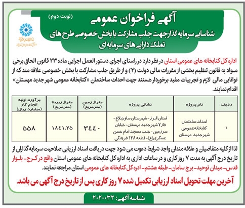 آگهی فراخوان عمومی اداره کل کتابخانه های استان البرز
