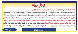 28 مهر 1404 شماره خبر: 333249 آگهی ابلاغ اتهام دانشگاه علوم پزشکی البرز سپیدارآنلاین: گروه مزایده و مناقصه آگهی ابلاغ اتهام دانشگاه علوم پزشکی البرز روزنامه پیام سپیدار شماره 2713 منتشر شد. نسخه قابل چاپ برچسب ها: آگهی ابلاغ اتهام دانشگاه علوم پزشکی البرز روزنامه پیام سپیدار شماره 2713 منتشر شد. مطالب مشابه: آگهی ابلاغ اتهام دانشگاه علوم پزشکی البرز آگهی ابلاغ اتهام دانشگاه علوم پزشکی البرز آگهی ابلاغ اتهام خانم واحد و خانم زارع پور دانشگاه علوم پزشکی البرز آگهی ابلاغ اتهام خانم معصومه خانی و الهام منزه دانشگاه علوم پزشکی البرز روزنامه پیام سپیدار اگهی ابلاغ اتهام دانشگاه علوم پزشکی البرز