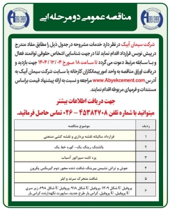• آگهی مناقصه سراسری دو مرحله ایی شرکت سیمان ابیک
