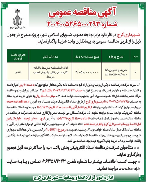 25 بهمن 1404 شماره خبر: 339732 آگهی مناقصه شهرداری کرج شماره 200400526500293 سپیدارآنلاین: گروه مزایده و مناقصه آگهی مناقصه شهرداری کرج شماره 200400526500293 روزنامه پیام سپیدار شماره 2791 منتشر شد. نسخه قابل چاپ برچسب ها: آگهی مناقصه شهرداری کرج شماره 200400526500293 روزنامه پیام سپیدار شماره 2791 منتشر شد. مطالب مشابه: روزنامه پیام سپیدار آگهی مناقصه عمومی آگهی تجدید مناقصه عمومی شماره 39-97 سازمان سیما و فضای سبز شهرداری کرج روزنامه پیام سپیدار آگهی مناقصه عمومی آگهی مناقصه عمومی یک مرحله ای شماره 11/97 ( نوبت اول) روزنامه پیام سپیدار آگهی مناقصه عمومی