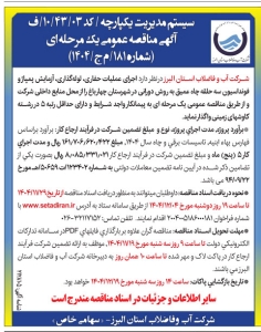 • آگهی مناقصه عمومی یک مرحله ای شماره 165/ م ع/ 1404 شرکت آب و فاضلاب البرز