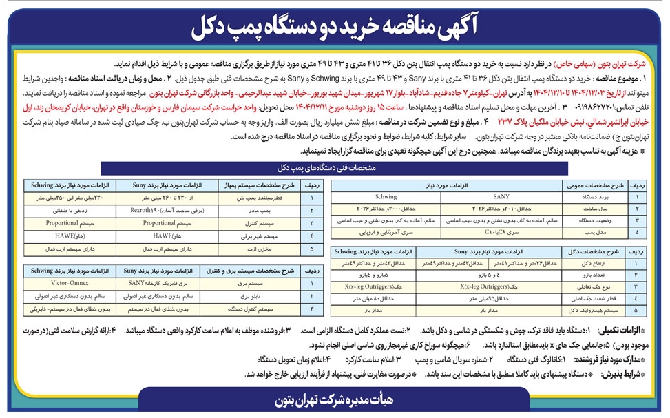 3 اسفند 1404 شماره خبر: 340166 آگهی مناقصه خرید دو دستگاه پمپ دکل شرکت تهران بتون سپیدارآنلاین: گروه مزایده و مناقصه آگهی مناقصه خرید دو دستگاه پمپ دکل شرکت تهران بتون روزنامه پیام سپیدار شماره 2797 منتشر شد. نسخه قابل چاپ برچسب ها: آگهی مناقصه خرید دو دستگاه پمپ دکل شرکت تهران بتون روزنامه پیام سپیدار شماره 2797 منتشر شد. مطالب مشابه: آگهی مناقصه عمومی خرید مصالح شرکت تهران بتون آگهی مناقصه خرید شن و ماسه شرکت تهران بتون آگهی مناقصه عمومی شرکت تهران بتون آگهی مناقصه عمومی شرکت تهران بتون آگهی مناقصه عمومی شرکت تهران بتون