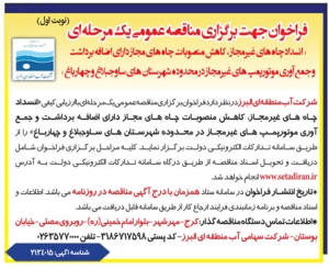 • روزنامه پیام سپیدار آگهی فراخوان مناقصه عمومی یک مرحله ای