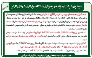 • روزنامه پیام سپیدار آگهی مزایده عمومی باشگاه بدنسازی شاهد