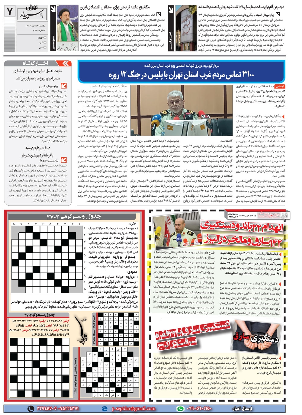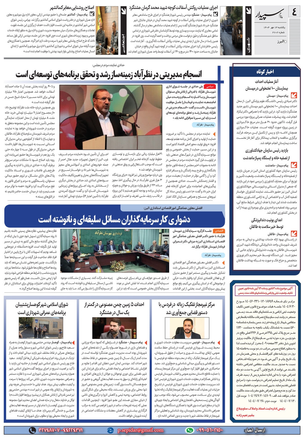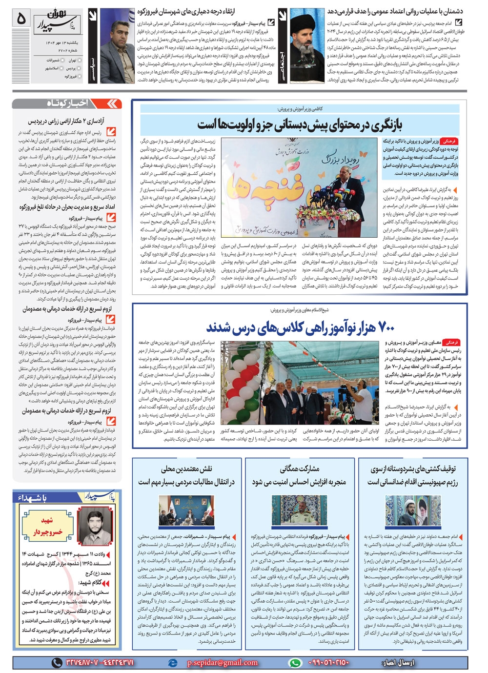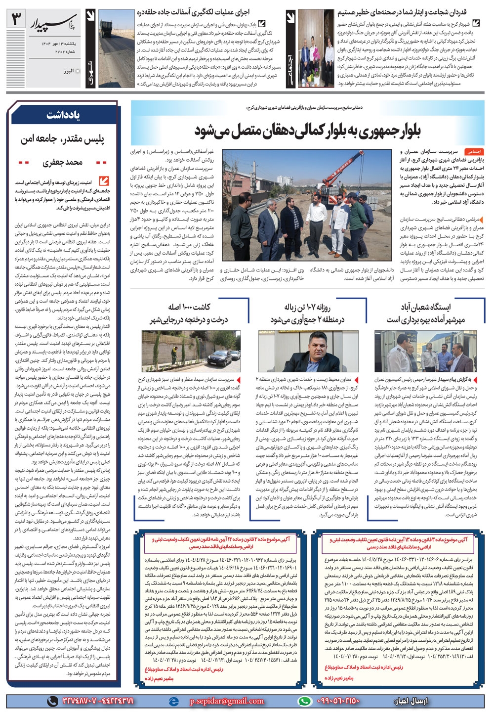 روزنامه پیام سپیدار شماره 2702 یکشنبه سیزدهم مهر سال هزارو چهارصدو چهار منتشر شد و در دسترس مخاطبین قرار گرفت. روزنامه پیام سپیدار را می توانید از کیوسک های مطبوعاتی سطح شهر تهیه کنید.