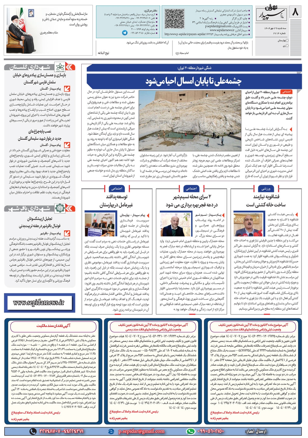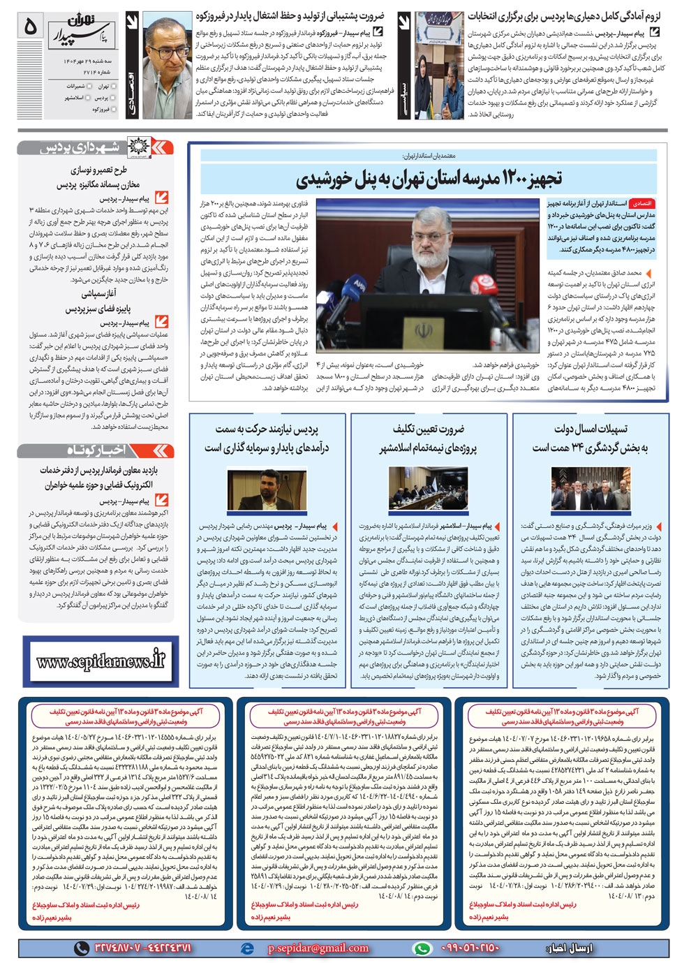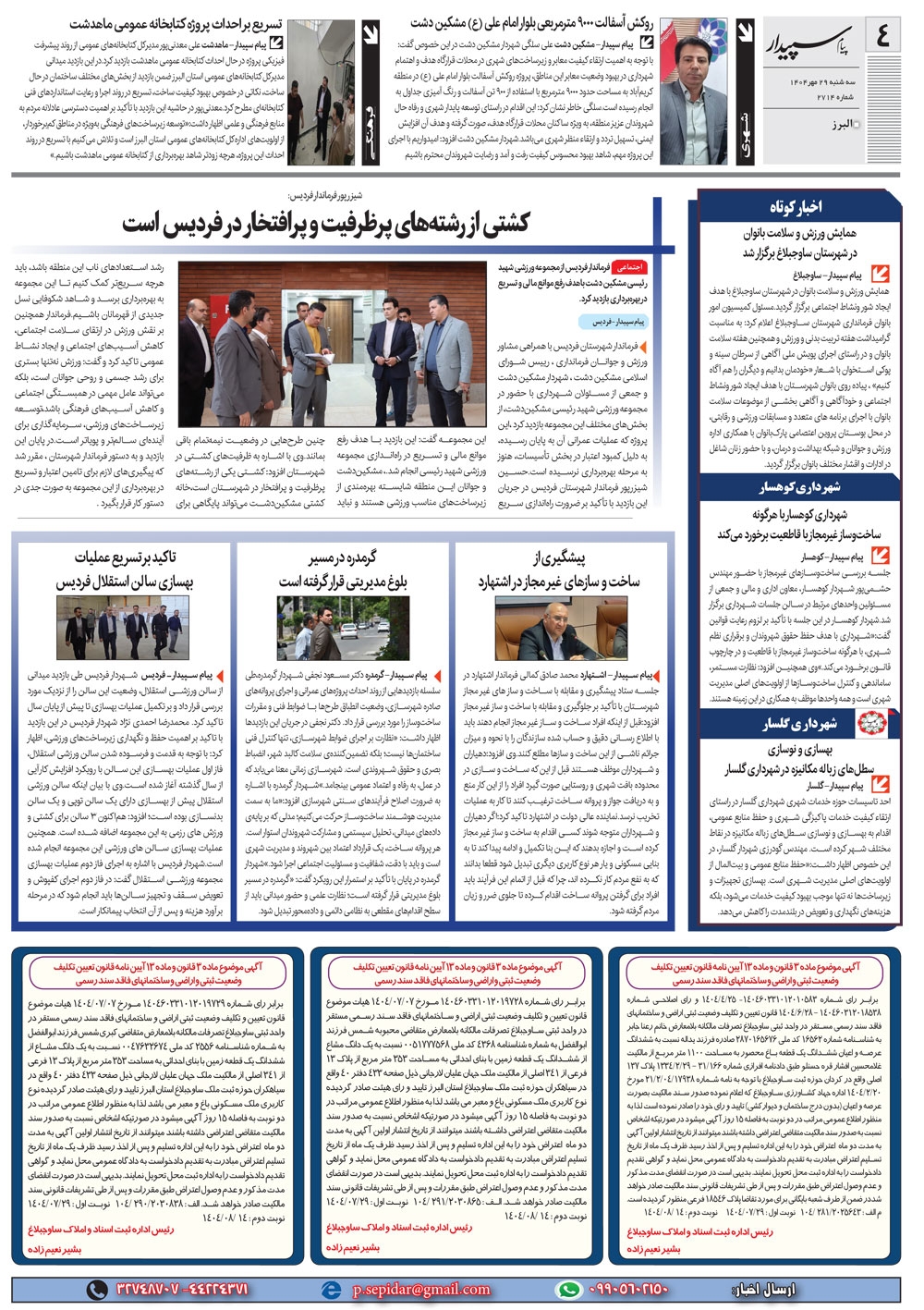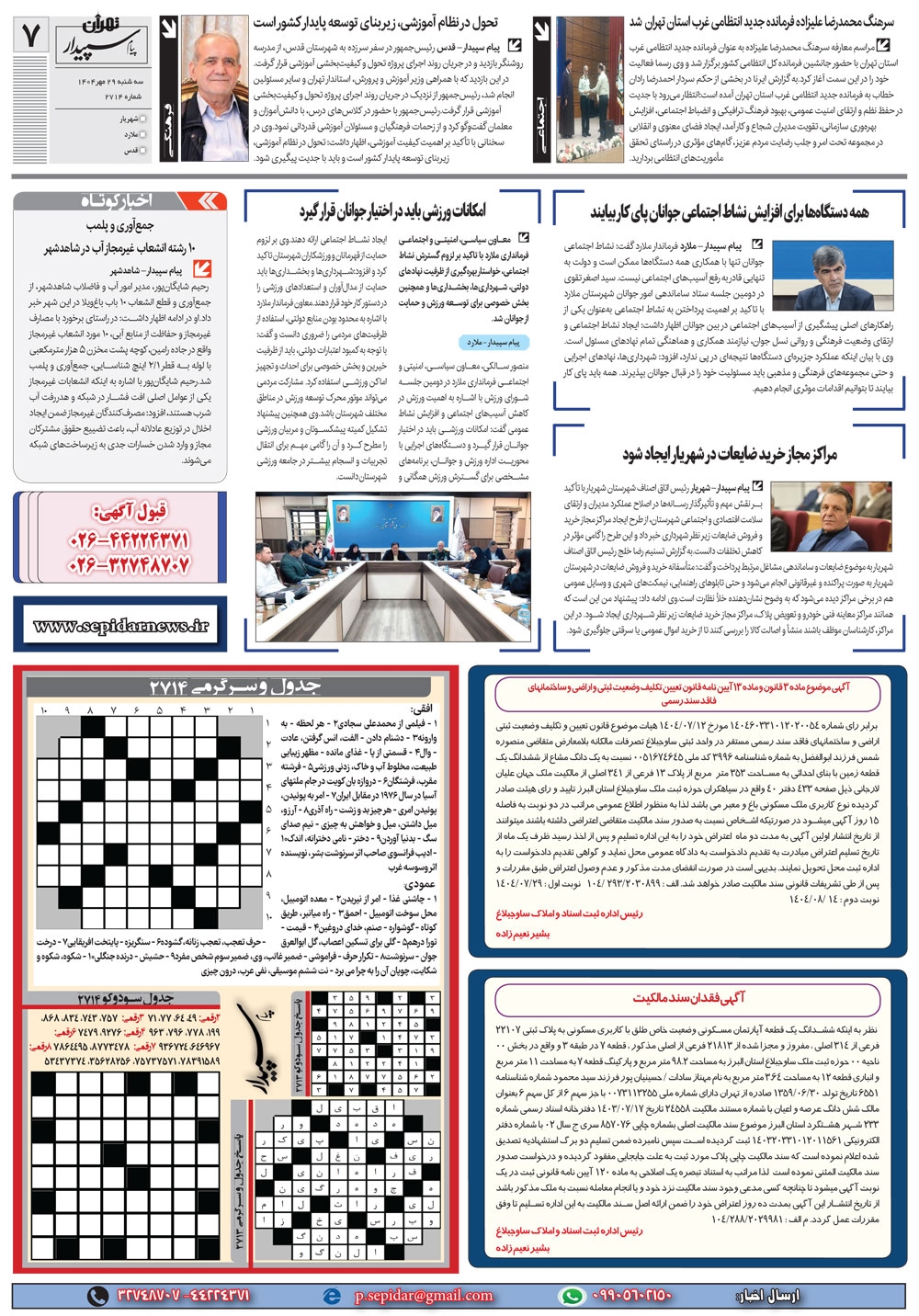 روزنامه پیام سپیدار شماره 2714سه شنبه بیست و نهم مهر سال هزارو چهارصدو چهار منتشر شد و در دسترس مخاطبین قرار گرفت. روزنامه پیام سپیدار را می توانید از کیوسک های مطبوعاتی سطح شهر تهیه کنید.