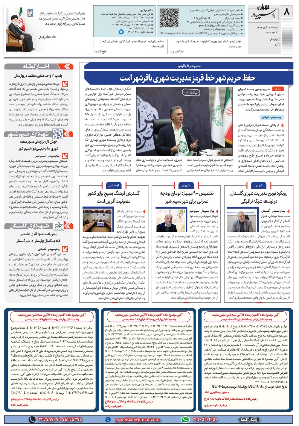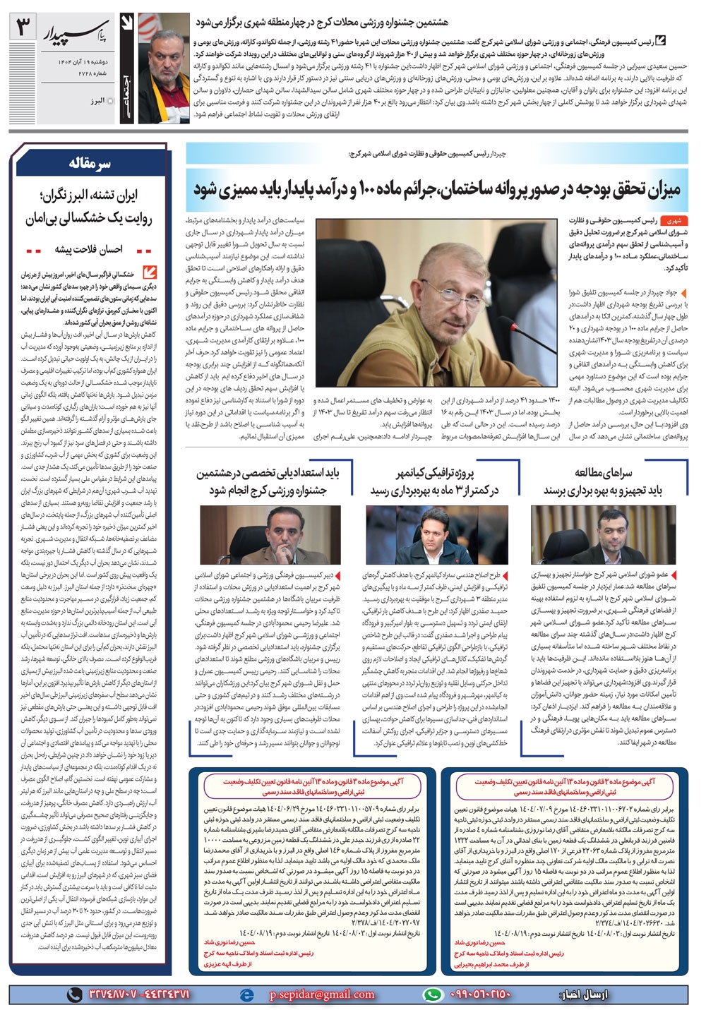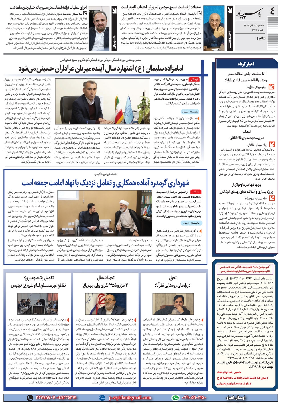 روزنامه پیام سپیدار شماره 2728 دوشنبه نوزدهم آبان سال هزارو چهارصدو چهار منتشر شد و در دسترس مخاطبین قرار گرفت. روزنامه پیام سپیدار را می توانید از کیوسک های مطبوعاتی سطح شهر تهیه کنید.
