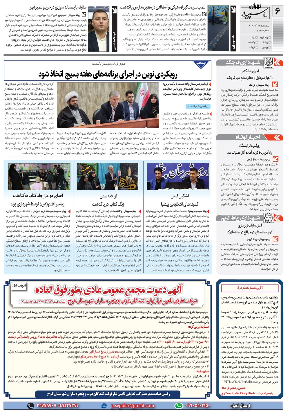 روزنامه پیام سپیدار شماره 2734 سه شنبه بیست و هفتم آبان سال هزارو چهارصدو چهار منتشر شد و در دسترس مخاطبین قرار گرفت. روزنامه پیام سپیدار را می توانید از کیوسک های مطبوعاتی سطح شهر تهیه کنید.