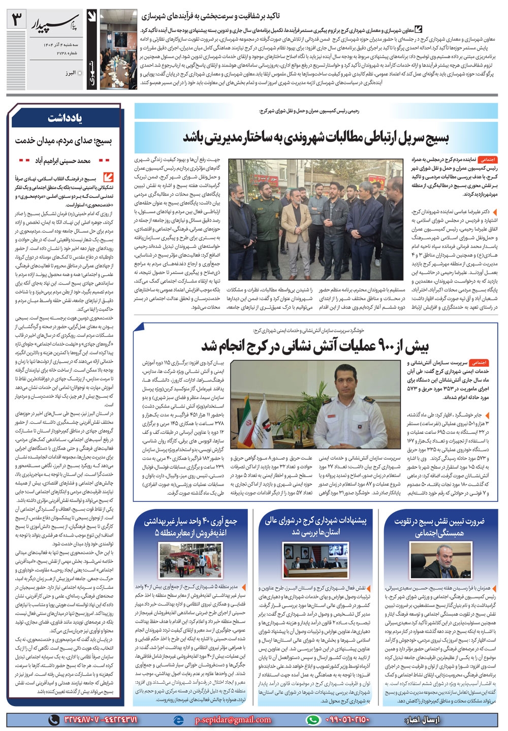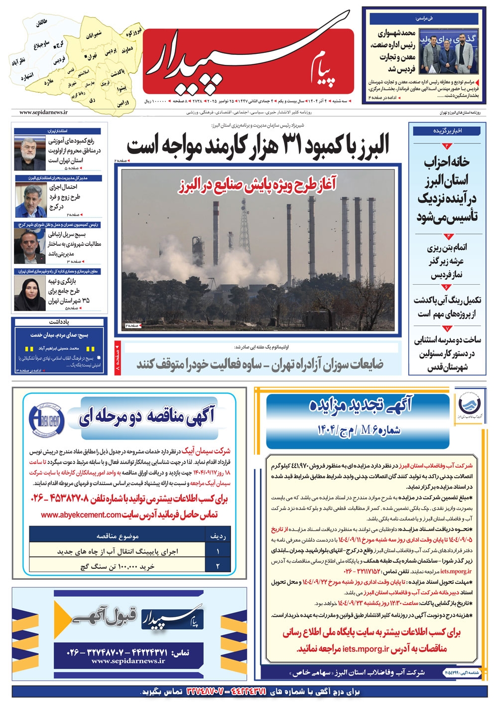 روزنامه پیام سپیدار شماره 2739 سه شنبه چهارم آذر سال هزارو چهارصدو چهار منتشر شد و در دسترس مخاطبین قرار گرفت. روزنامه پیام سپیدار را می توانید از کیوسک های مطبوعاتی سطح شهر تهیه کنید.