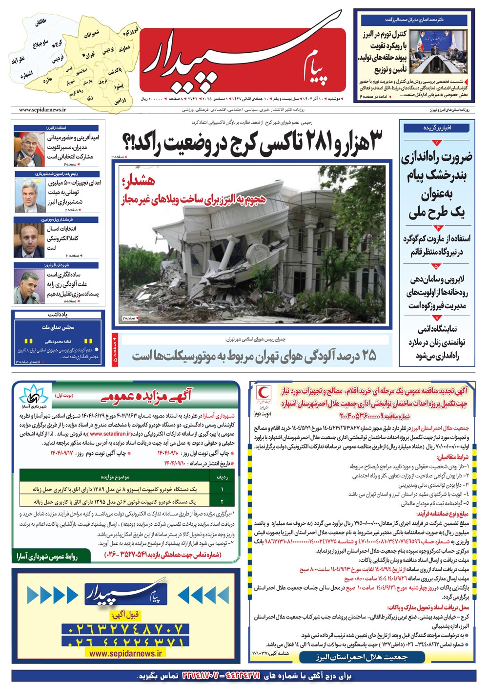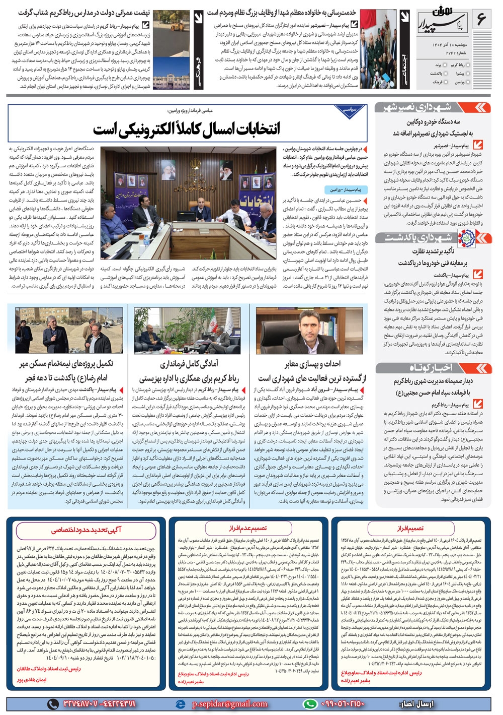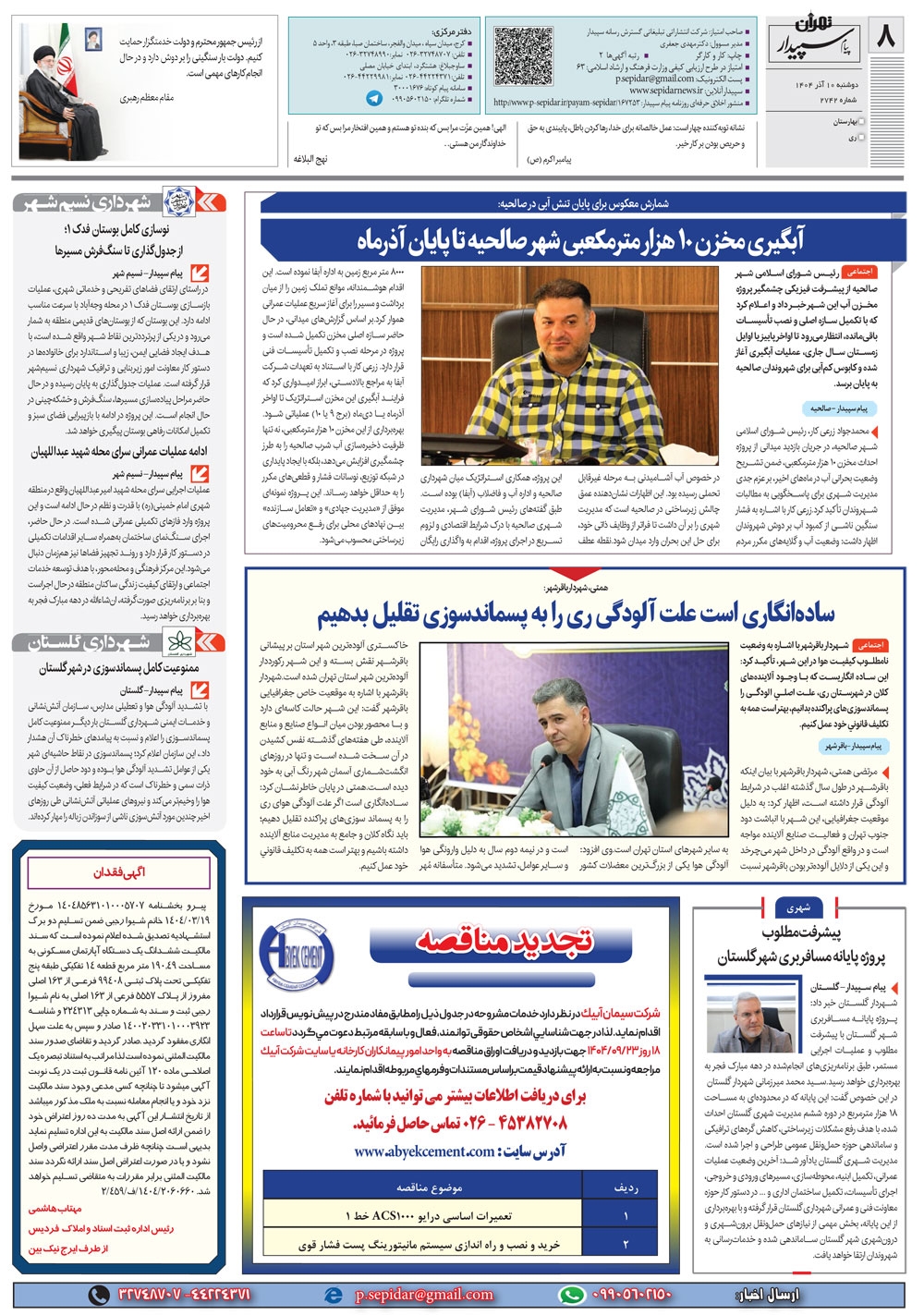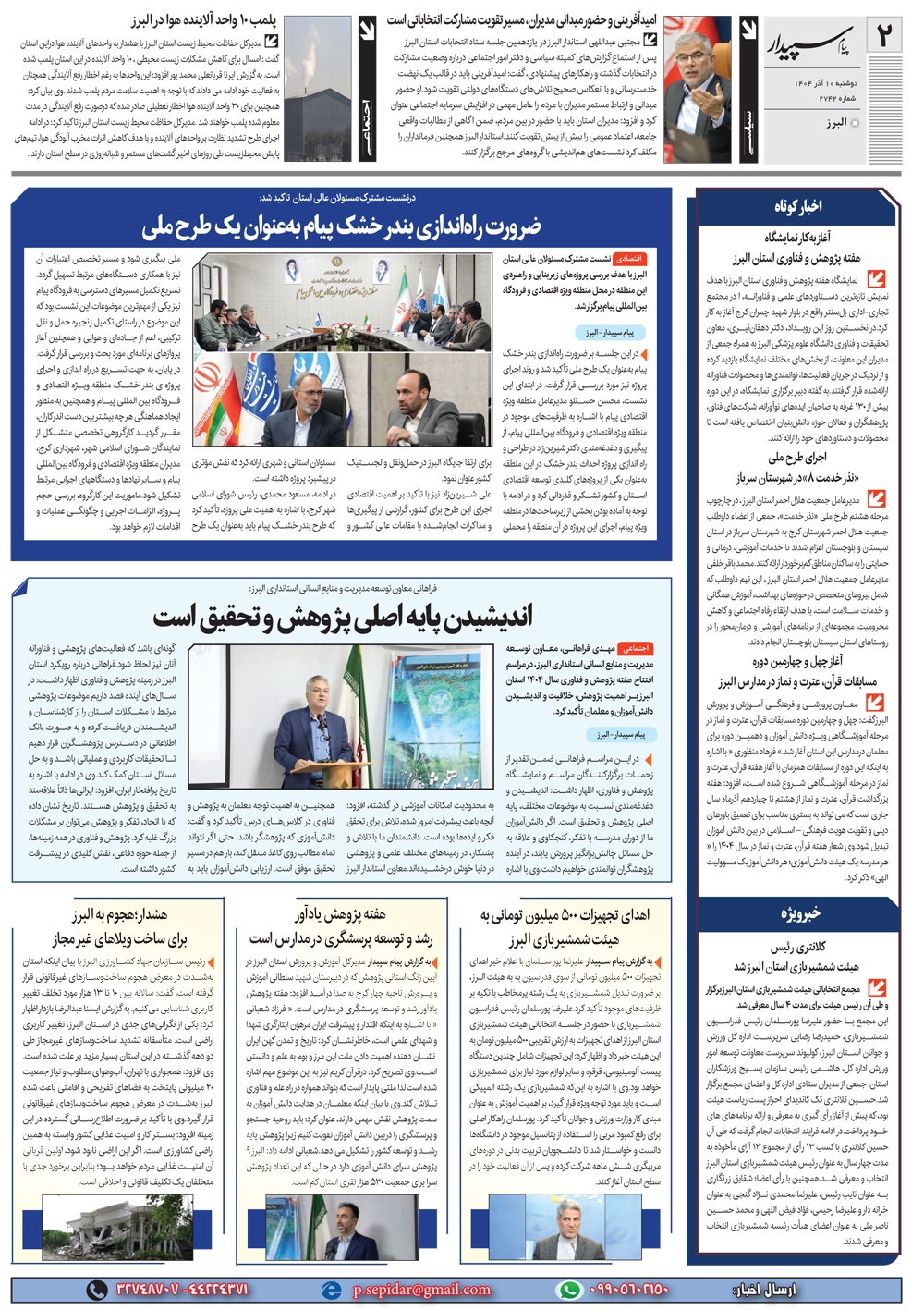 روزنامه پیام سپیدار شماره 2742 دوشنبه دهم آذر سال هزارو چهارصدو چهار منتشر شد و در دسترس مخاطبین قرار گرفت. روزنامه پیام سپیدار را می توانید از کیوسک های مطبوعاتی سطح شهر تهیه کنید.