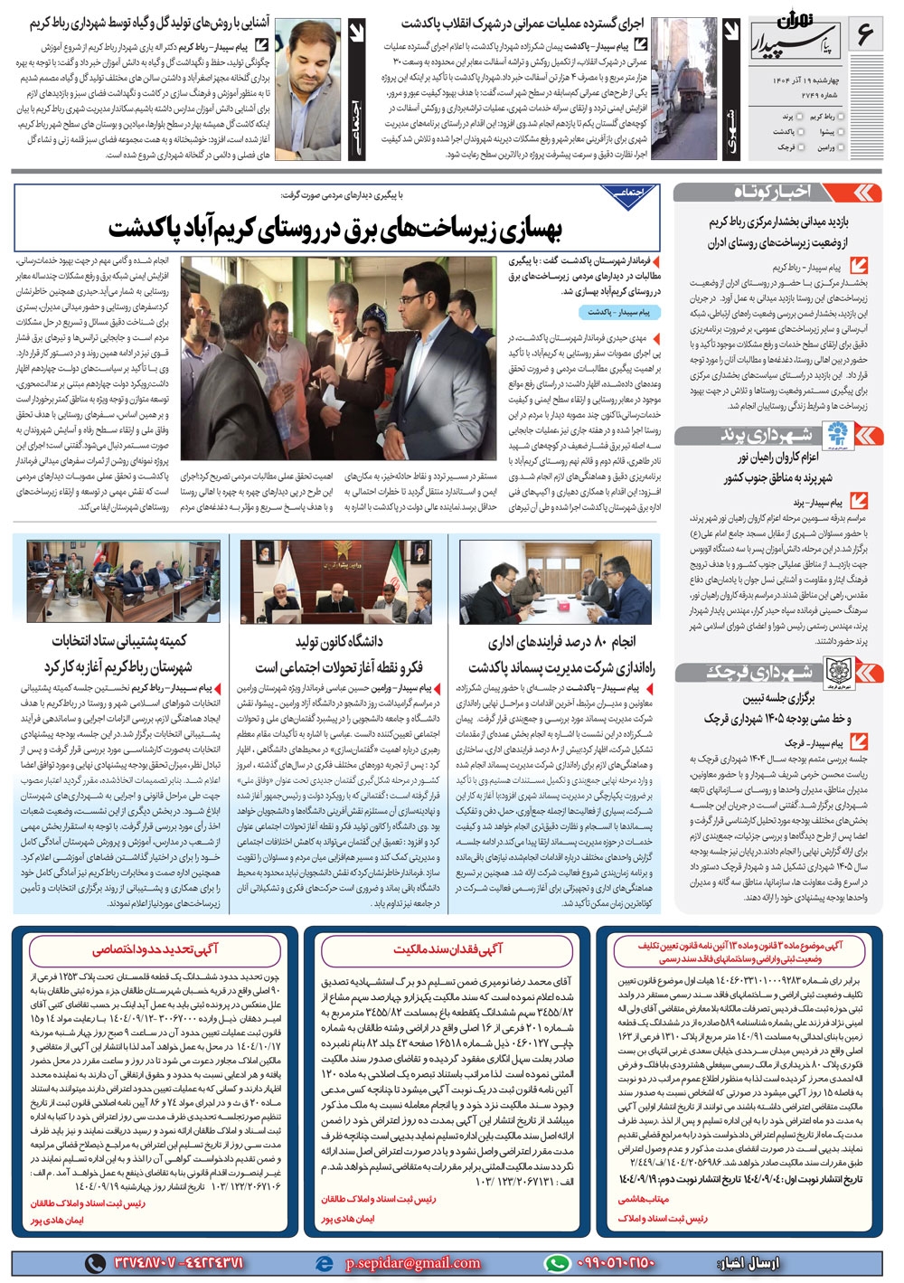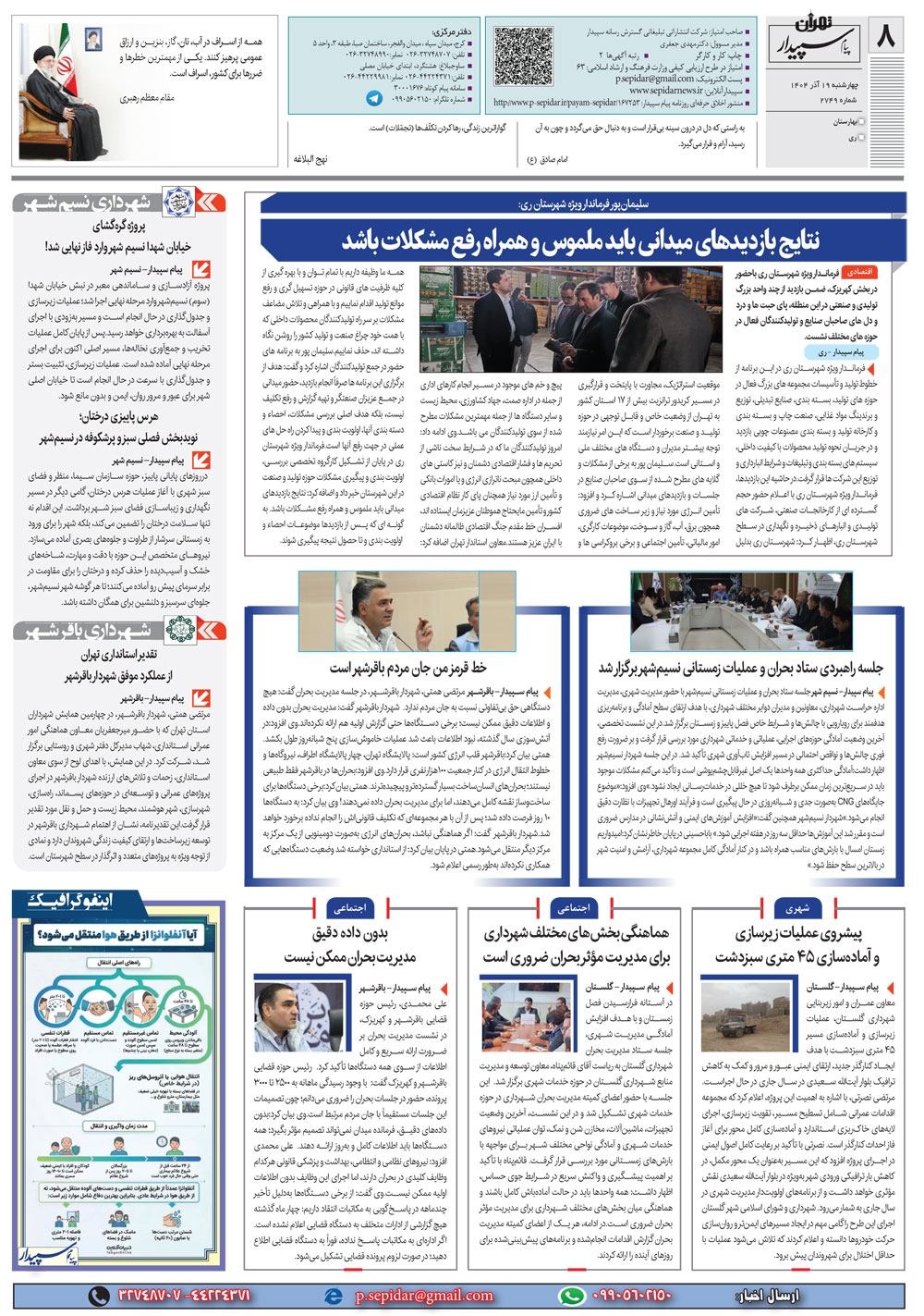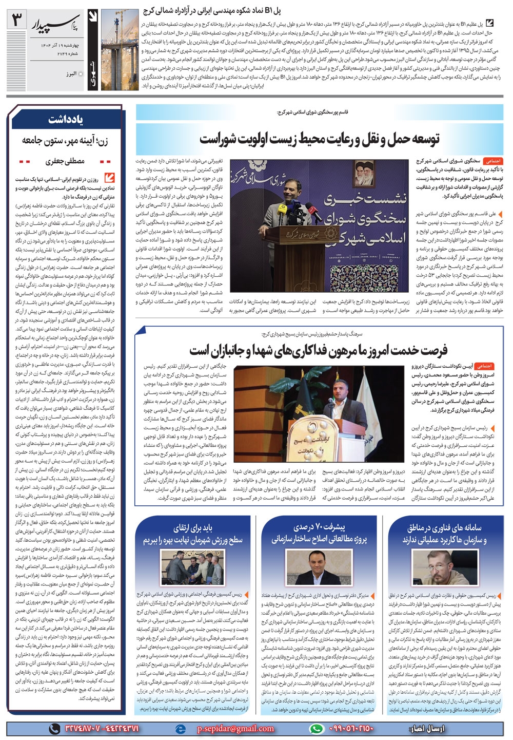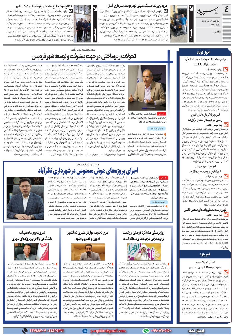 روزنامه پیام سپیدار شماره 2749 چهارشنبه نوزدهم آذر سال هزارو چهارصدو چهار منتشر شد و در دسترس مخاطبین قرار گرفت. روزنامه پیام سپیدار را می توانید از کیوسک های مطبوعاتی سطح شهر تهیه کنید.