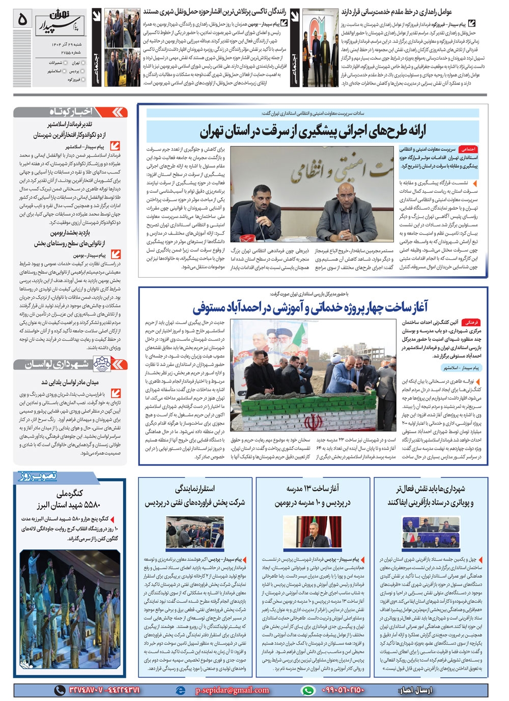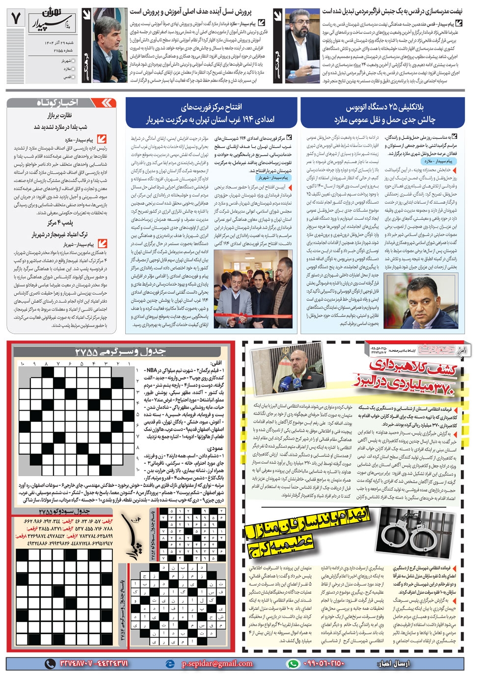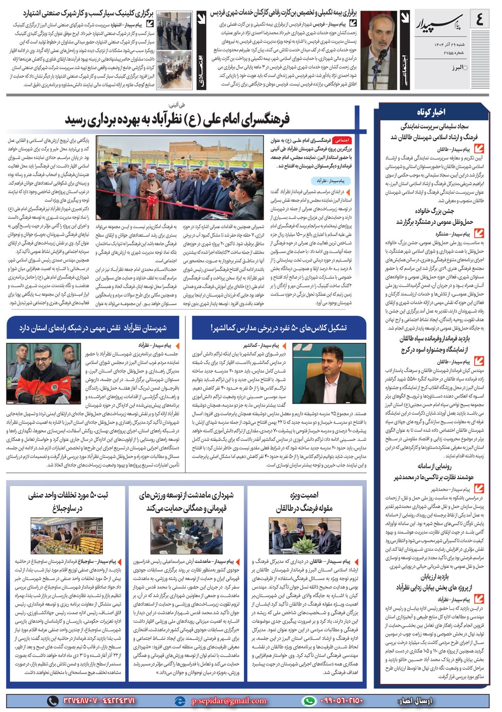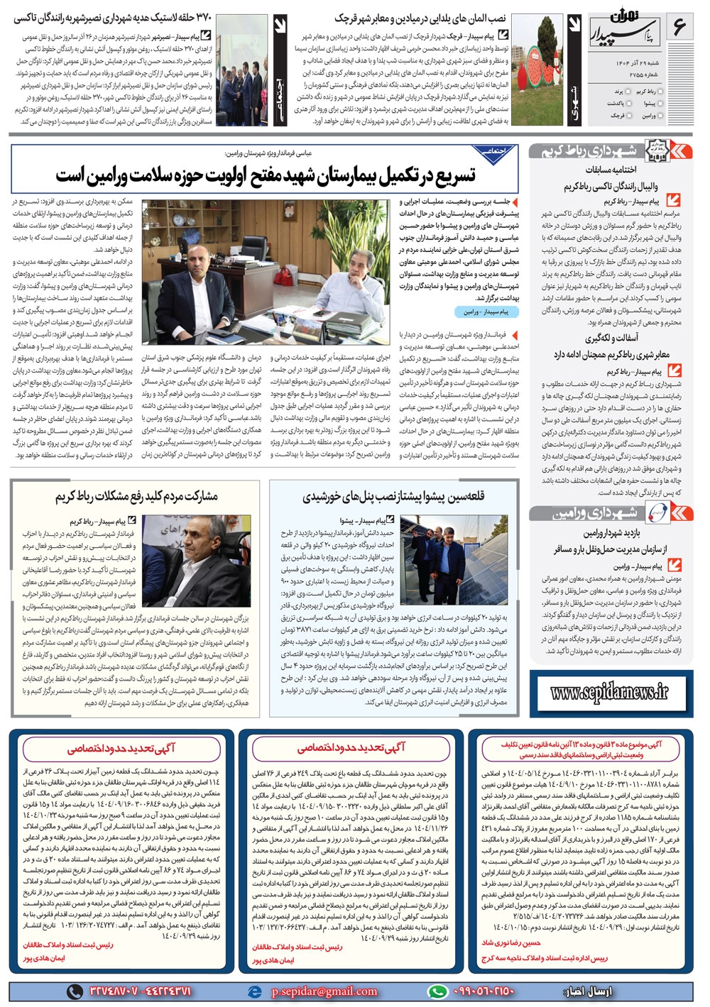 روزنامه پیام سپیدار شماره 2755 شنبه بیست و نهم آذر سال هزارو چهارصدو چهار منتشر شد و در دسترس مخاطبین قرار گرفت. روزنامه پیام سپیدار را می توانید از کیوسک های مطبوعاتی سطح شهر تهیه کنید.