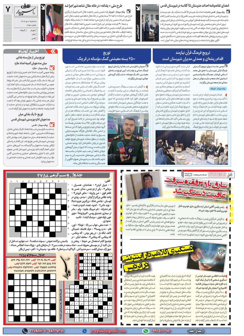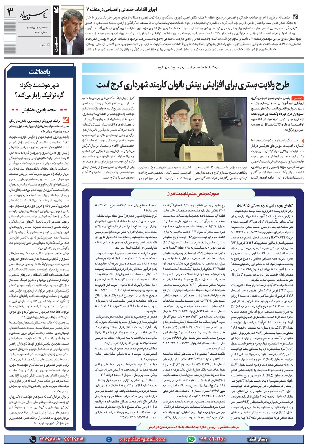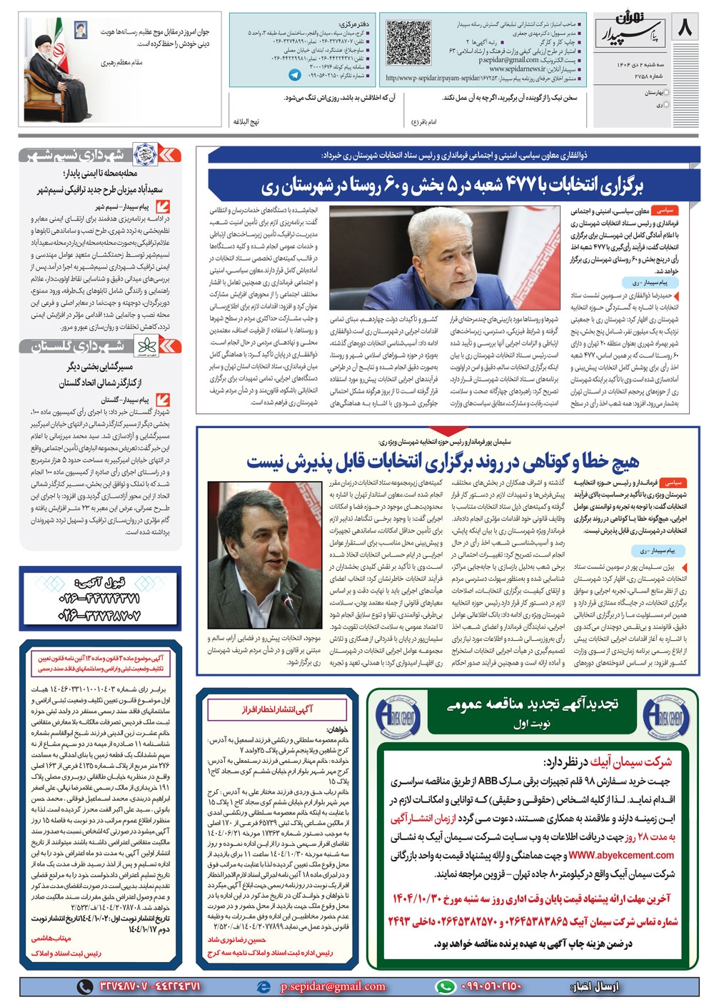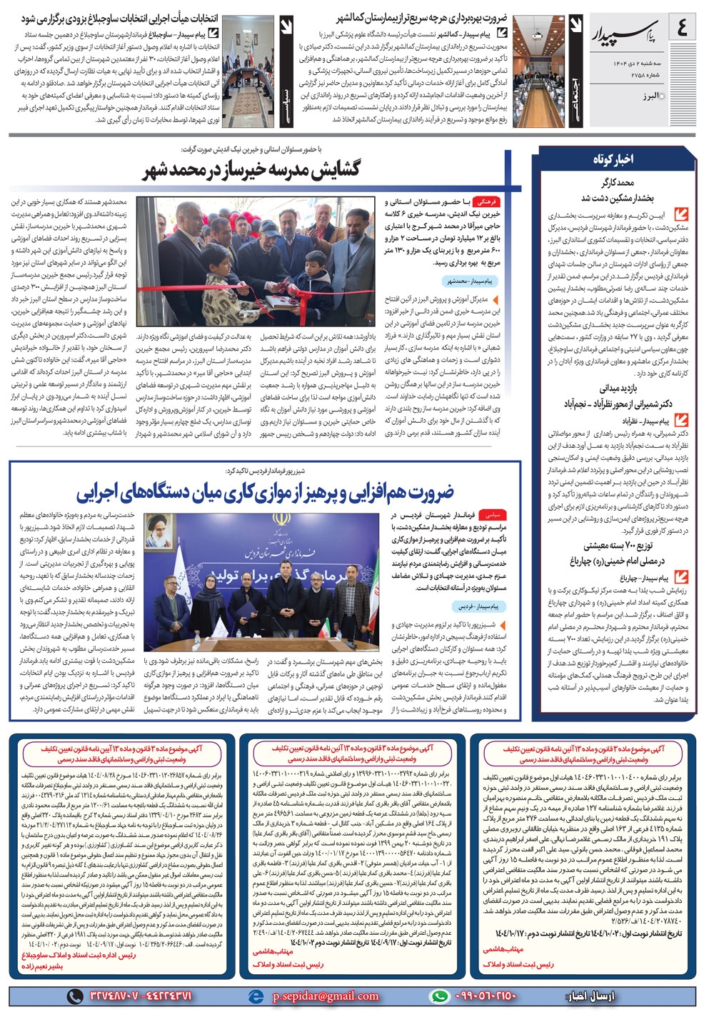 روزنامه پیام سپیدار شماره 2758سه شنبه دوم دیماه سال هزارو چهارصدو چهار منتشر شد و در دسترس مخاطبین قرار گرفت. روزنامه پیام سپیدار را می توانید از کیوسک های مطبوعاتی سطح شهر تهیه کنید.