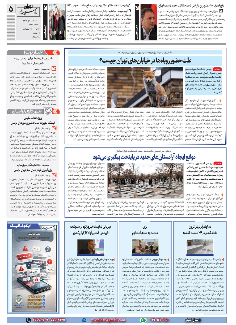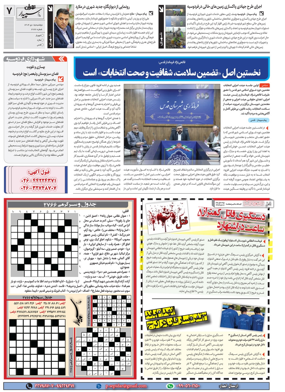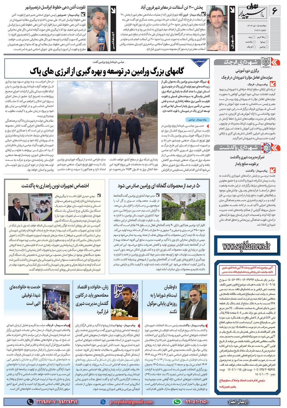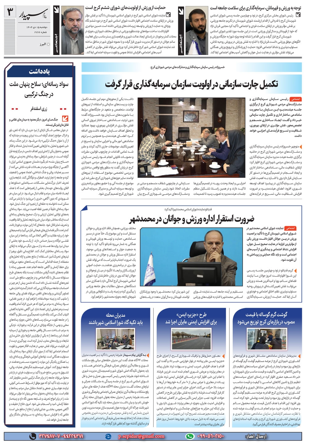 روزنامه پیام سپیدار شماره 2766 دوشنبه پانزدهم دیماه سال هزارو چهارصدو چهار منتشر شد و در دسترس مخاطبین قرار گرفت. روزنامه پیام سپیدار را می توانید از کیوسک های مطبوعاتی سطح شهر تهیه کنید.