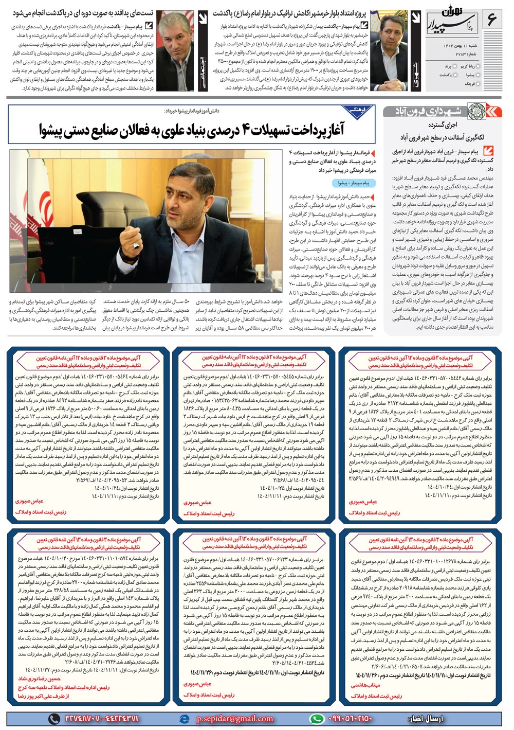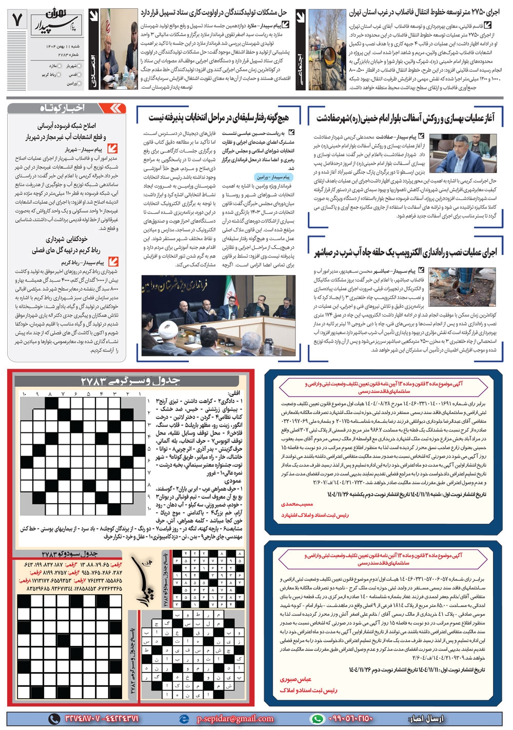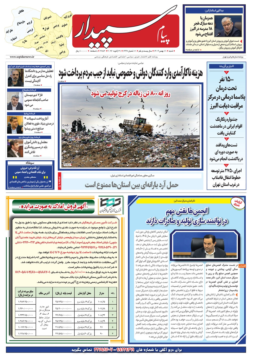 روزنامه پیام سپیدار شماره 2783 شنبه یازدهم دیماه سال هزارو چهارصدو چهار منتشر شد و در دسترس مخاطبین قرار گرفت. روزنامه پیام سپیدار را می توانید از کیوسک های مطبوعاتی سطح شهر تهیه کنید.