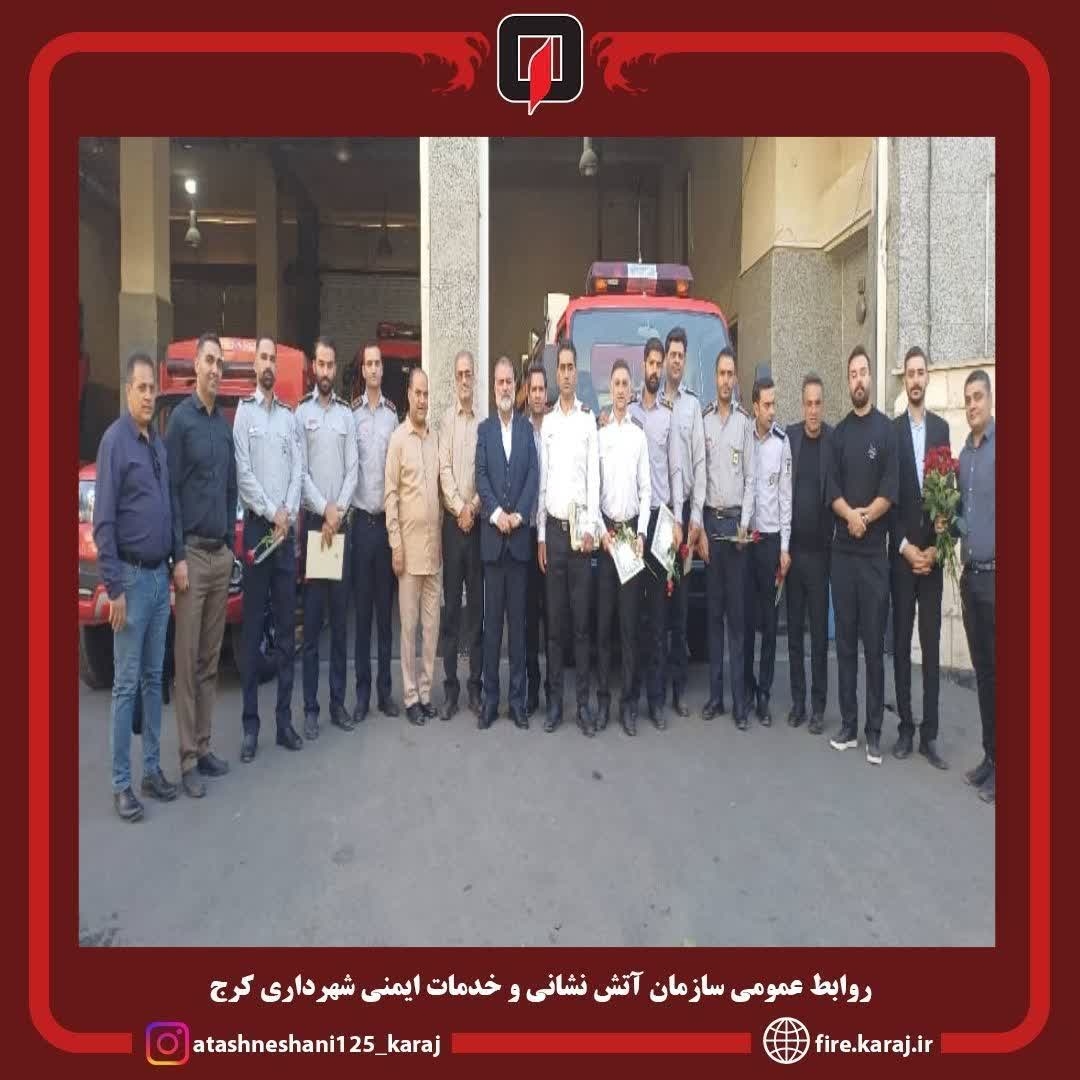حشمت الله عزیزی مدیر منطقه هفت شهرداری کرج با حضور در ایستگاه ۱۲۲، دیدار صمیمانهای با آتشنشانان داشت و بر ضرورت حمایت همهجانبه از این قشر فداکار تأکید کرد. همچنین غلامرضا رضوانی مدیر منطقه هشت شهرداری(در زمان تصدی منطقه مذکور) با حضور در ایستگاههای ۱۰۳ و ۱۲۵، ضمن گفتگو با نیروهای عملیاتی، تلاشهای شبانهروزی آتشنشانان را در حفظ ایمنی شهروندان شایسته تقدیر دانست.این بازدیدها در فضایی صمیمی برگزار شد و مسئولان با اهدای پیام تبریک هفته آتشنشانی، از روحیه ایثار و خدمترسانی آتشنشانان تجلیل کردند.