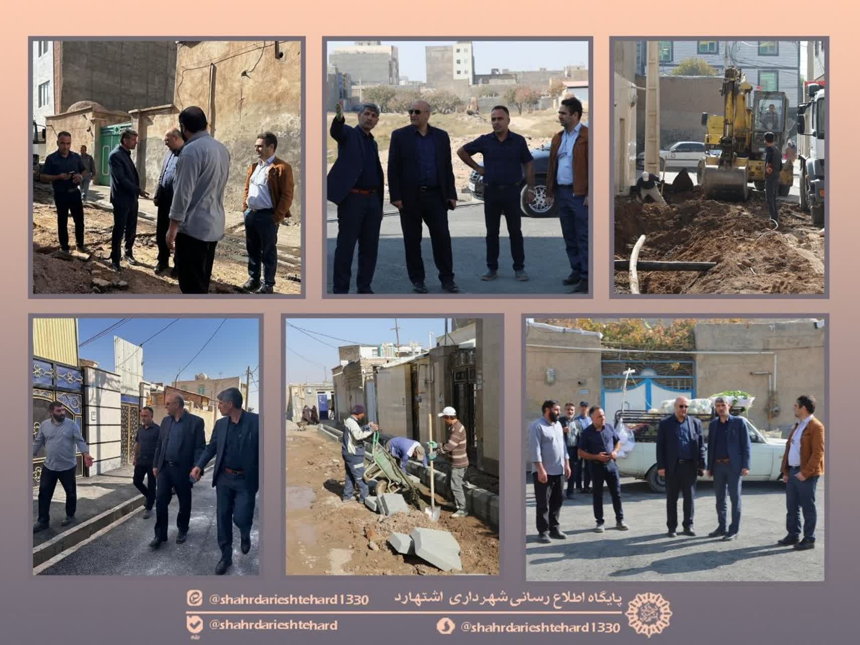 فرماندار، شهردار، معاون شهردار به همراه مسئولان عمران و اجرایی پروژه‌های عمرانی شهرداری اشتهارد ساعاتی قبل از روند پیشرفت پروژه های عمرانی در مناطق هدف قرارگاه اجتماعی بازدید کردند.
