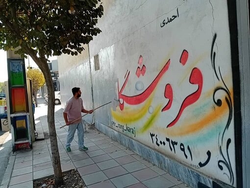 پاکسازی دیوارنوشته‌های غیرمجاز در منطقه ۲ شهرداری کرج