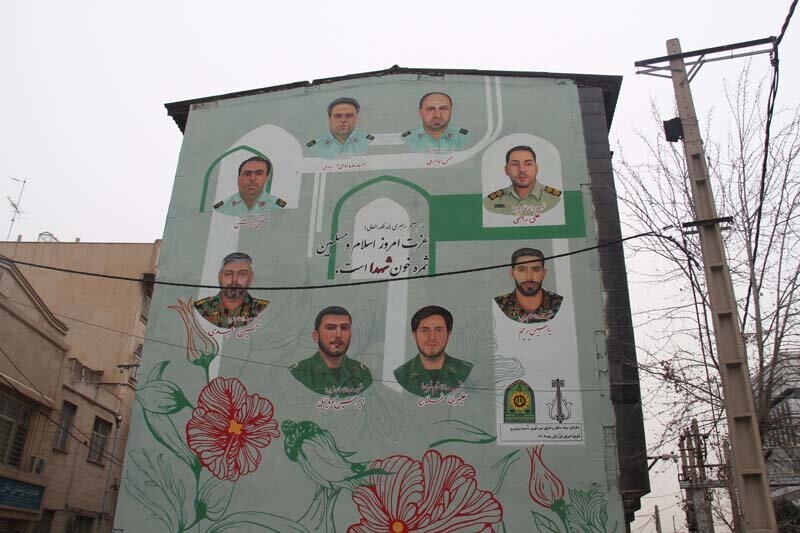 تمثال شهدای نیروی انتظامی بر دیوار مجاور بلوار بلال نقش بست