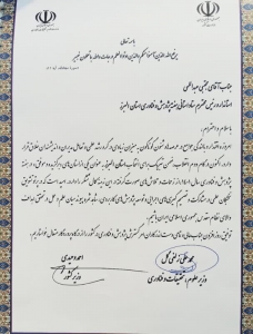 در متن این لوح به صورت مشترک از سوی احمد وحیدی وزیر کشور و محمدعلی زلفی گل وزیر علوم، تحقیقات و فناوری خطاب به مجتبی عبداللهی استاندار البرز آمده است: