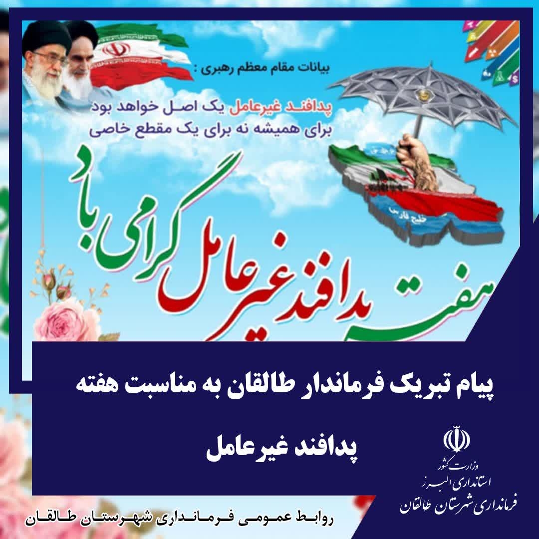 پیام تبریک فرماندار طالقان به مناسبت هفته پدافند غیرعامل