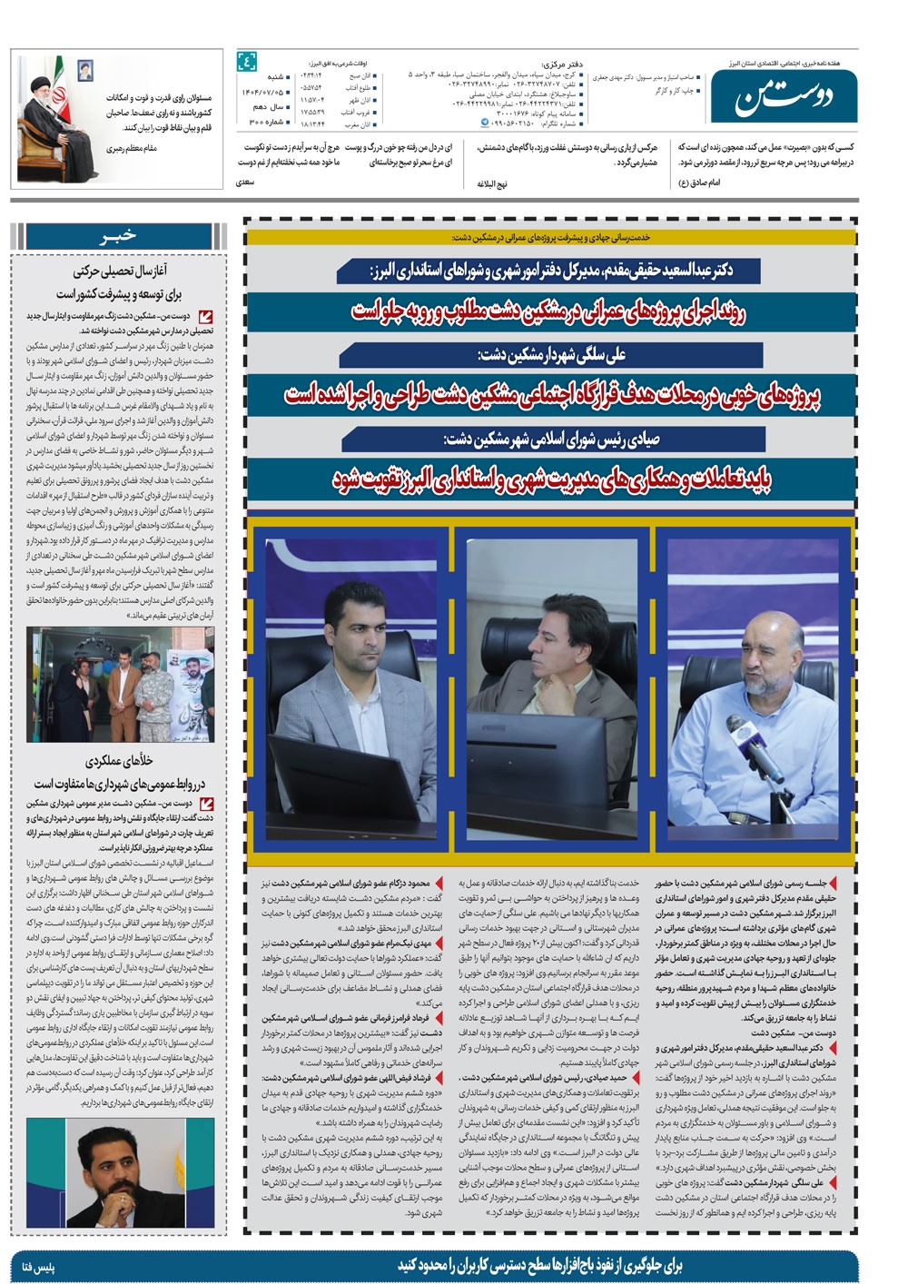 هفته نامه دوست من شماره 293 شنبه هجدهم مرداد ماه سال هزار و چهارصدو سه منتشر شد و در دسترس مخاطبین قرار گرفت. هفته نامه دوست من را می توانید از کیوسک های مطبوعاتی سطح شهر تهیه کنید.