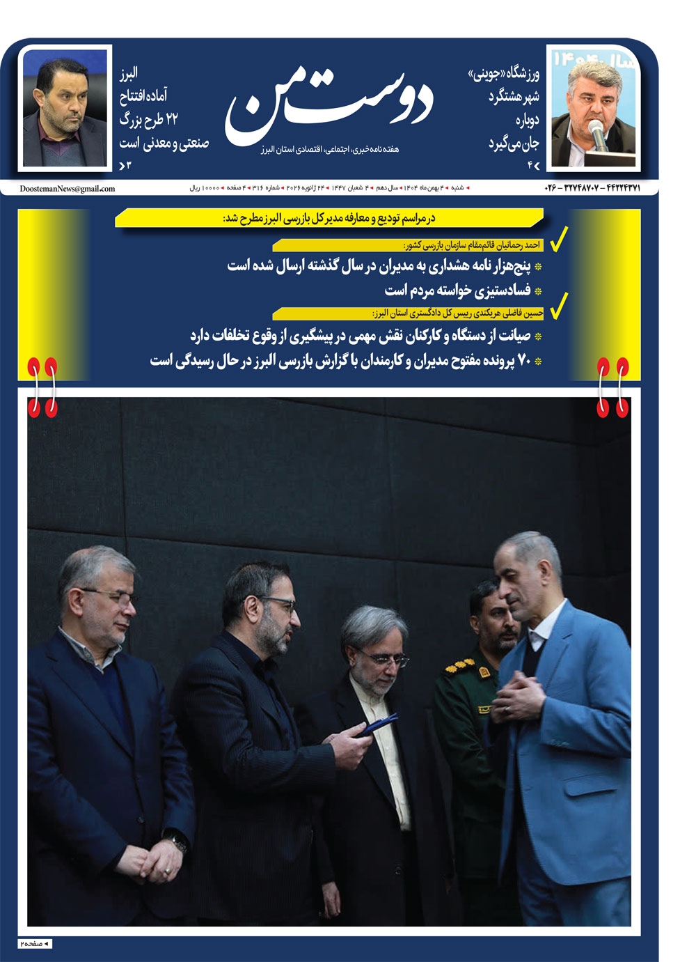 هفته نامه دوست من شماره 311 شنبه بیست و دوم آذر ماه سال هزار و چهارصدو سه منتشر شد و در دسترس مخاطبین قرار گرفت. هفته نامه دوست من را می توانید از کیوسک های مطبوعاتی سطح شهر تهیه کنید.