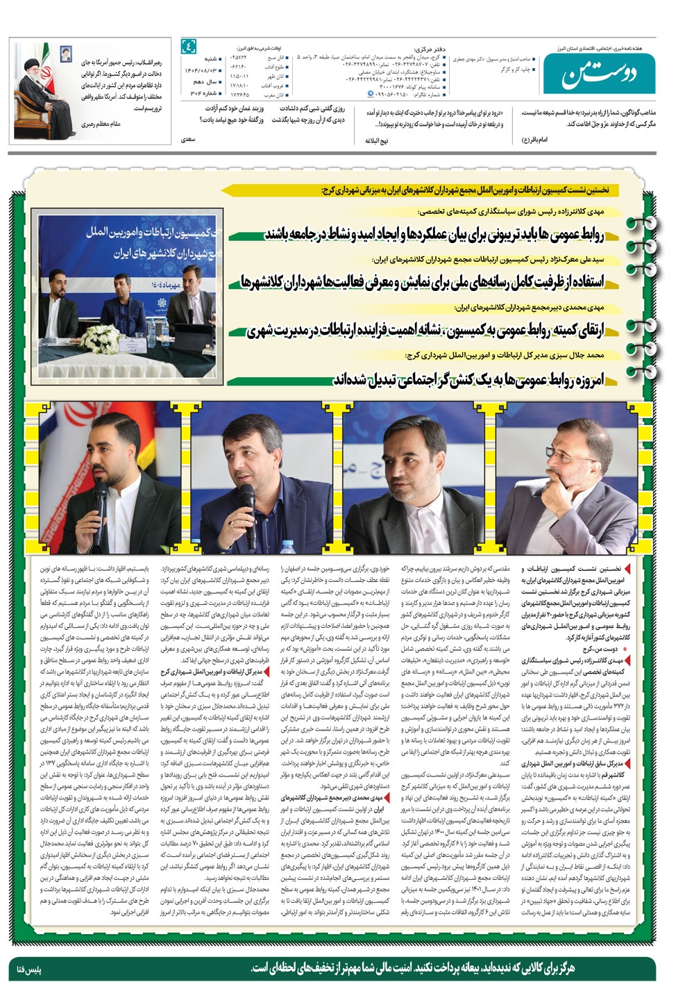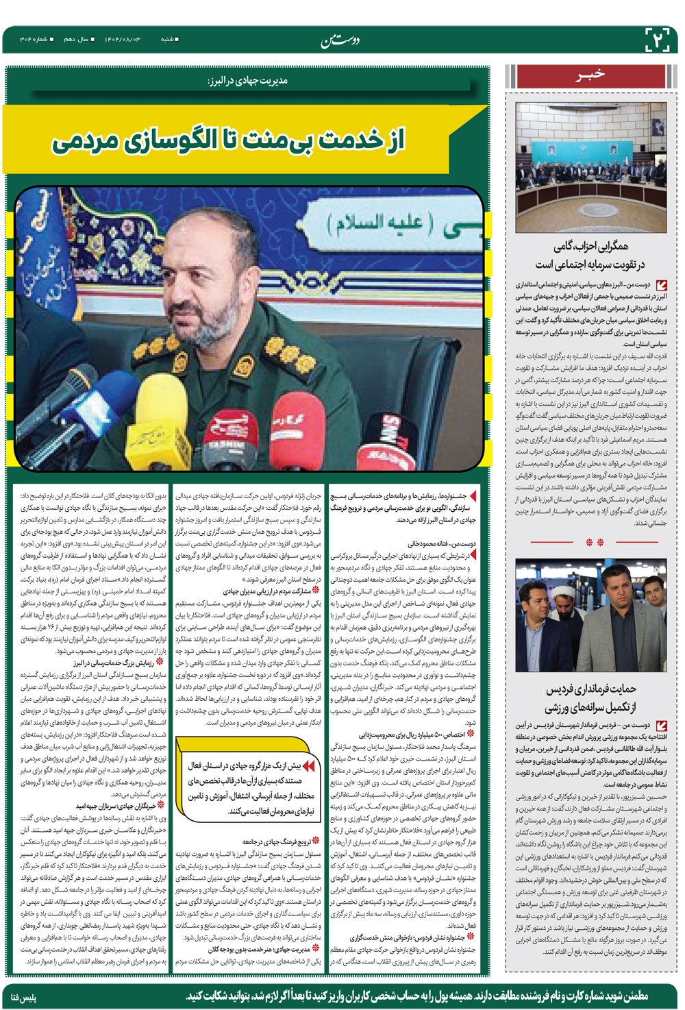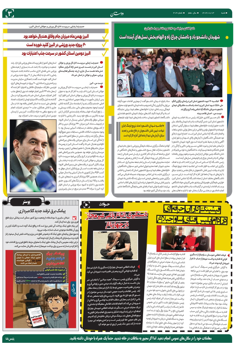 هفته نامه دوست من شماره 304 شنبه سوم آبان ماه سال هزار و چهارصدو سه منتشر شد و در دسترس مخاطبین قرار گرفت. هفته نامه دوست من را می توانید از کیوسک های مطبوعاتی سطح شهر تهیه کنید.