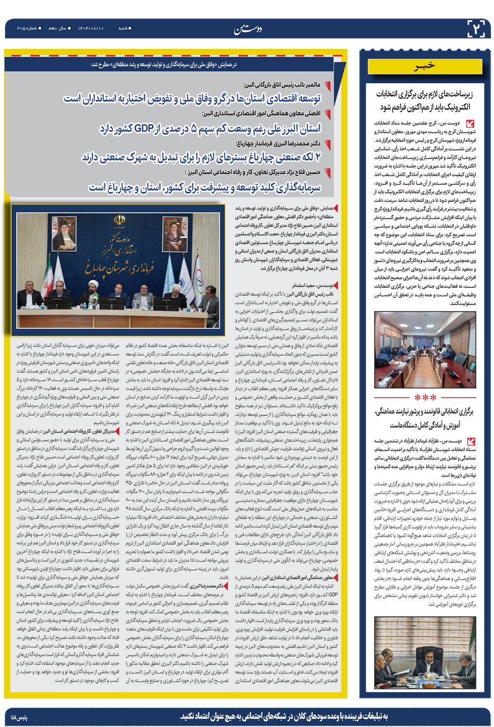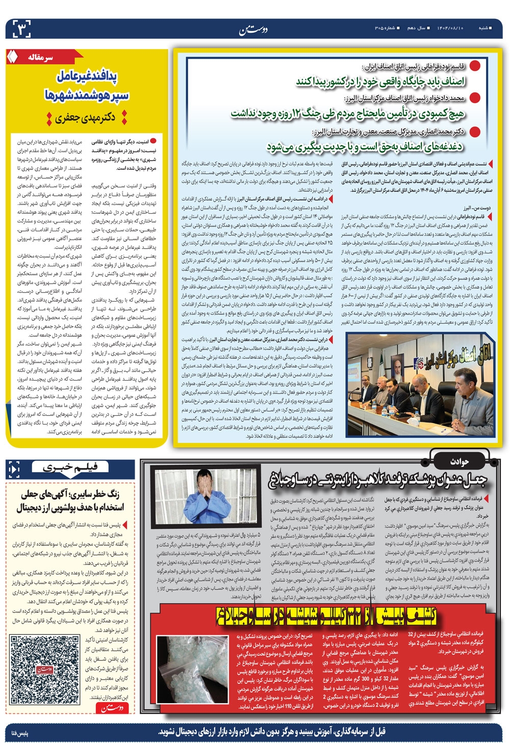 هفته نامه دوست من شماره 305 شنبه دهم آبان ماه سال هزار و چهارصدو سه منتشر شد و در دسترس مخاطبین قرار گرفت. هفته نامه دوست من را می توانید از کیوسک های مطبوعاتی سطح شهر تهیه کنید.