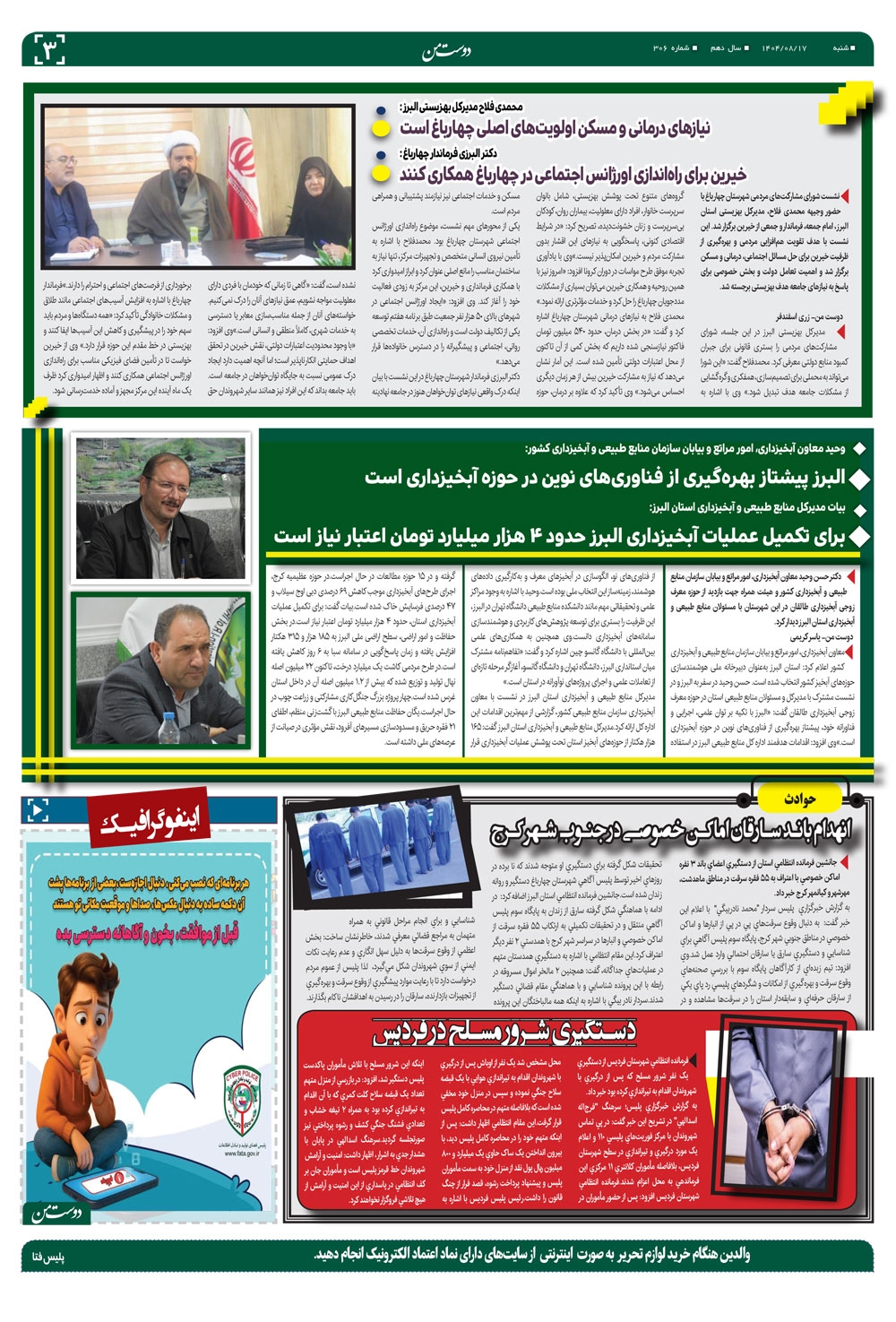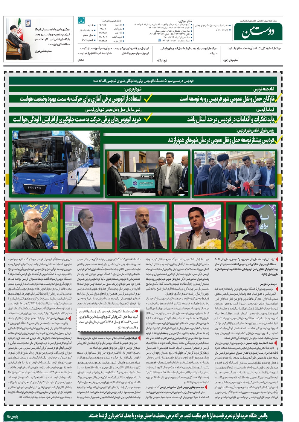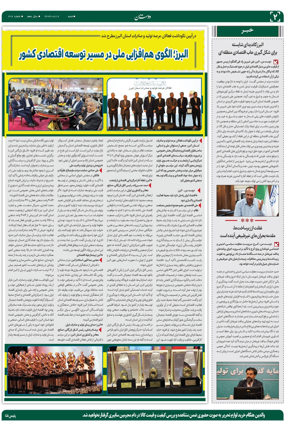 هفته نامه دوست من شماره 306 شنبه هفدهم آبان ماه سال هزار و چهارصدو سه منتشر شد و در دسترس مخاطبین قرار گرفت. هفته نامه دوست من را می توانید از کیوسک های مطبوعاتی سطح شهر تهیه کنید.