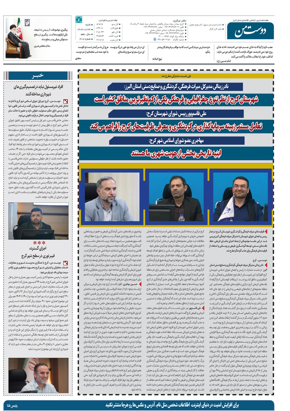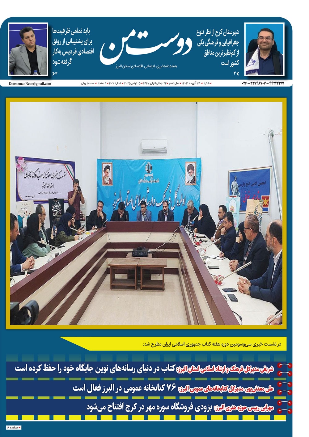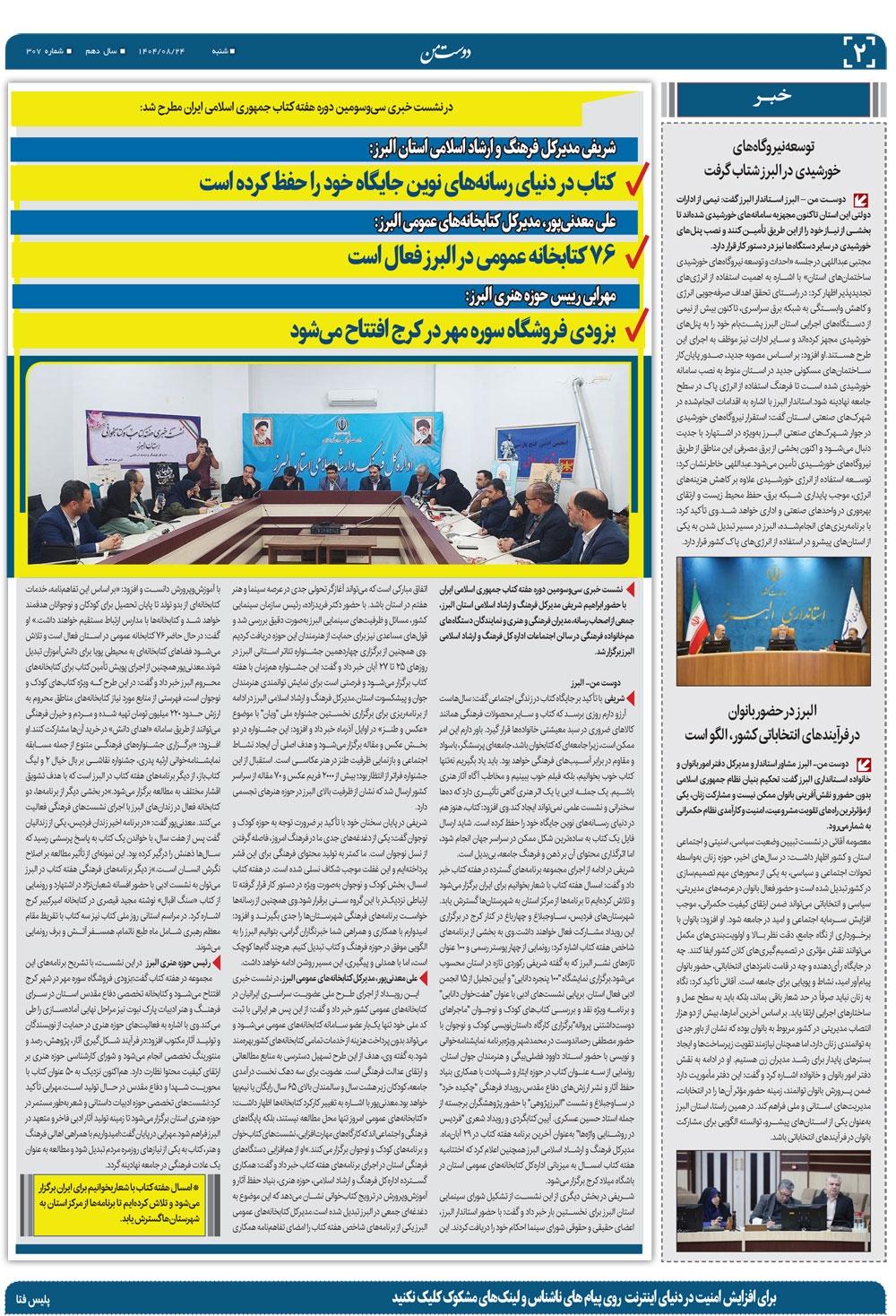 هفته نامه دوست من شماره 307 شنبه بیست و چهارم آبان ماه سال هزار و چهارصدو سه منتشر شد و در دسترس مخاطبین قرار گرفت. هفته نامه دوست من را می توانید از کیوسک های مطبوعاتی سطح شهر تهیه کنید.