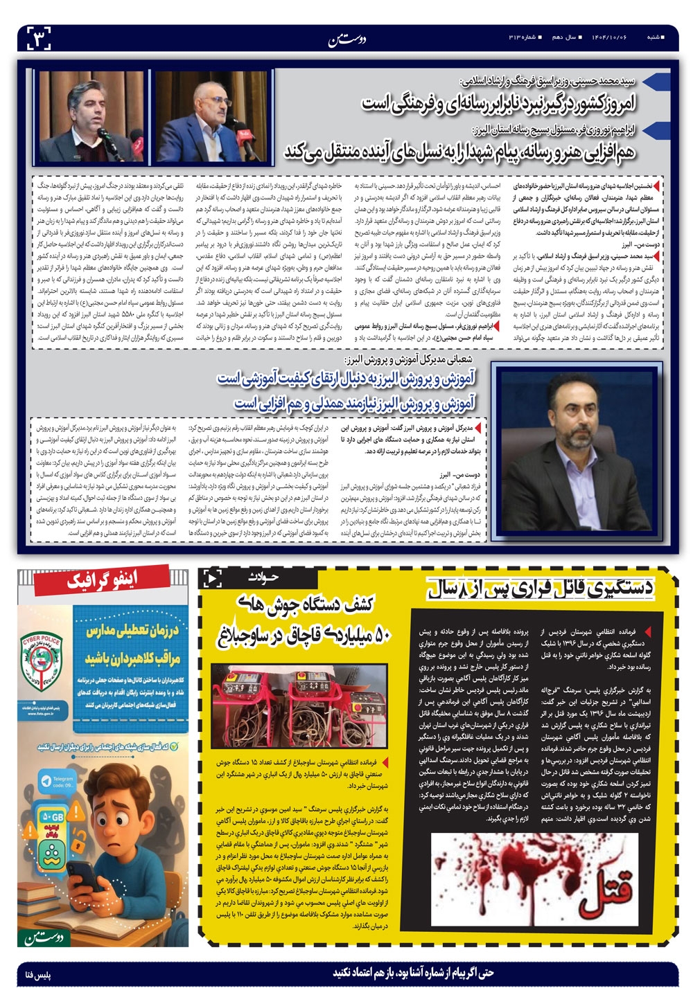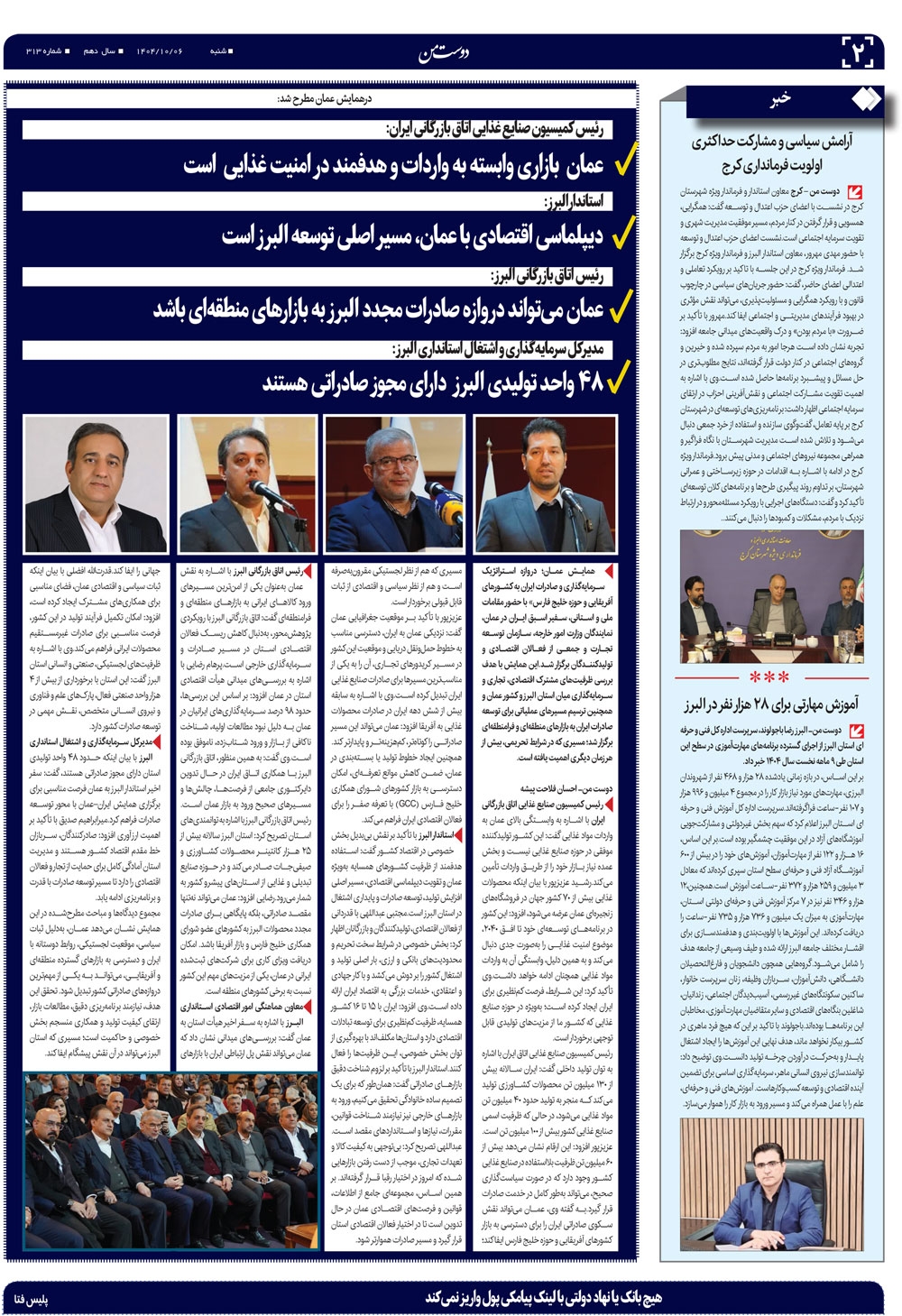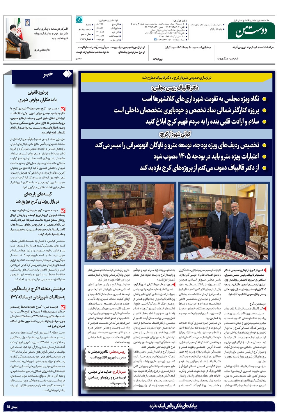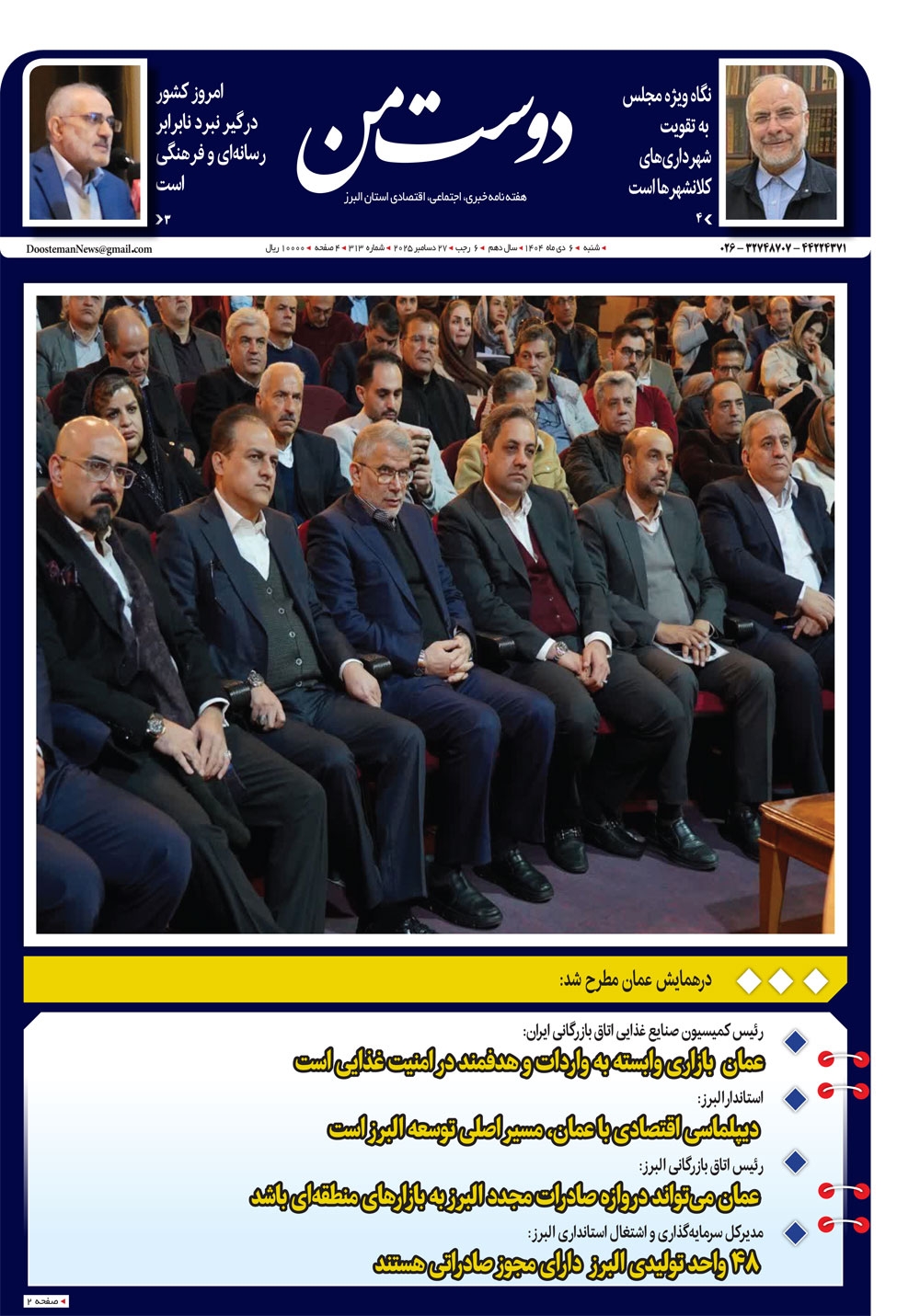 هفته نامه دوست من شماره 313 شنبه ششم دیماه سال هزار و چهارصدو سه منتشر شد و در دسترس مخاطبین قرار گرفت. هفته نامه دوست من را می توانید از کیوسک های مطبوعاتی سطح شهر تهیه کنید.