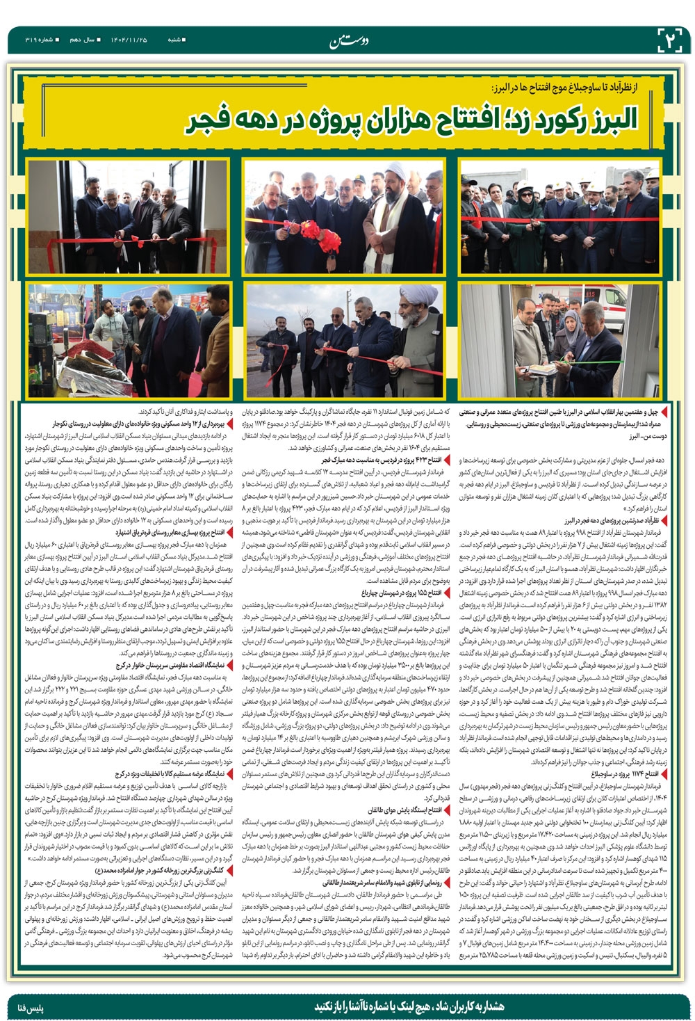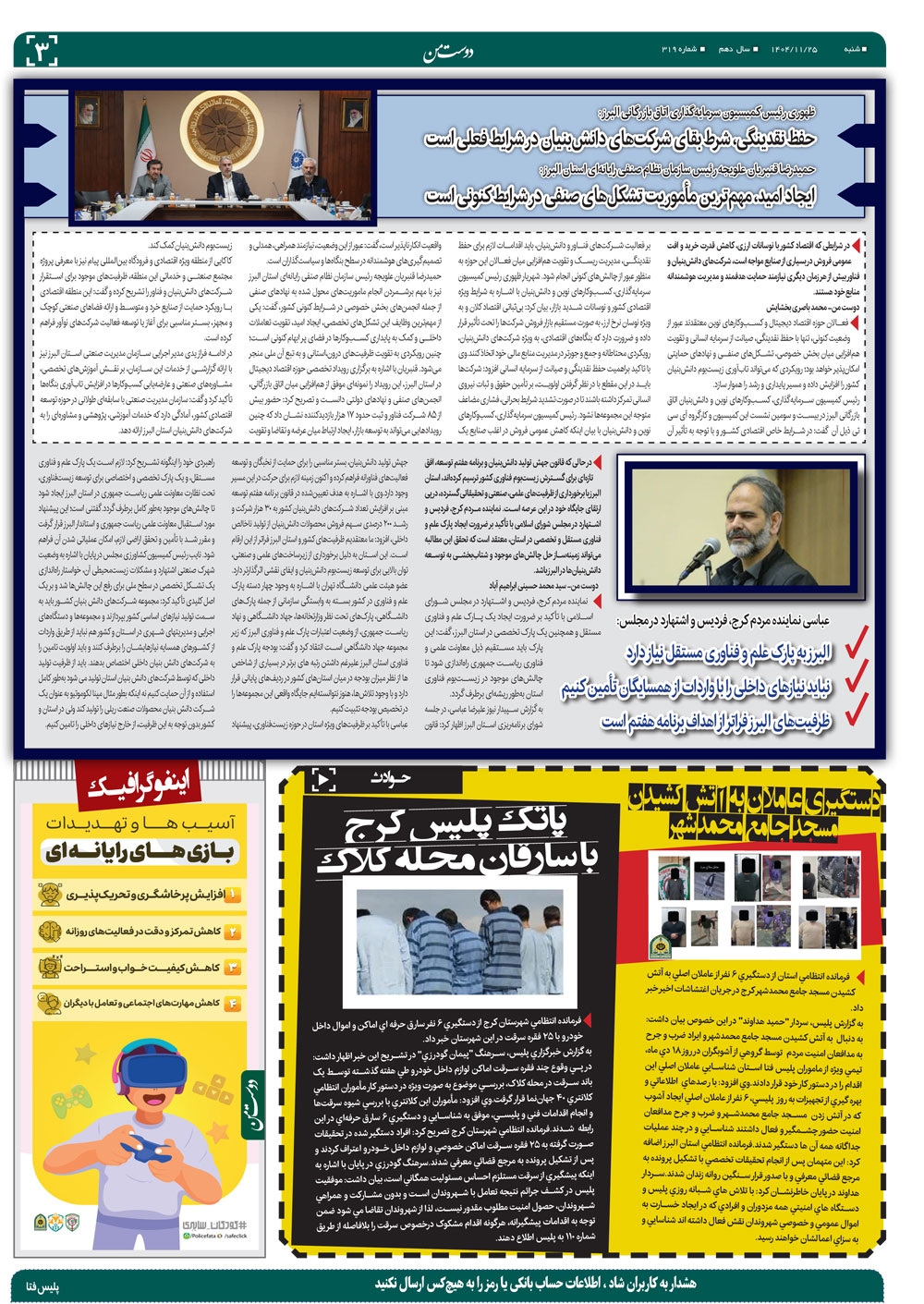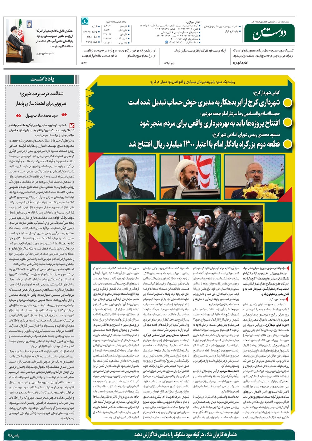 هفته نامه دوست من شماره 319 شنبه بیست و پنجم بهمن ماه سال هزار و چهارصدو سه منتشر شد و در دسترس مخاطبین قرار گرفت. هفته نامه دوست من را می توانید از کیوسک های مطبوعاتی سطح شهر تهیه کنید.